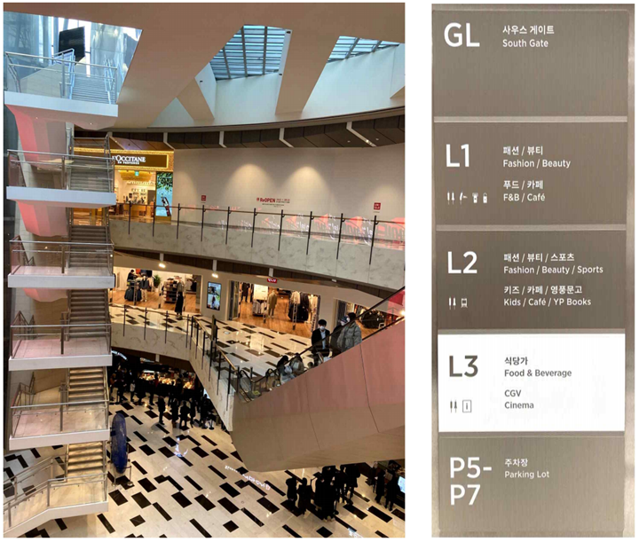 “찾았다. 여기 보세요. 1층을 GL(Ground Level)이라고 하는 것도 신기했는데 쇼핑몰은 그 아래로 내려가더라고요. 층 표기도 L1, L2, L3으로 부르고요.”