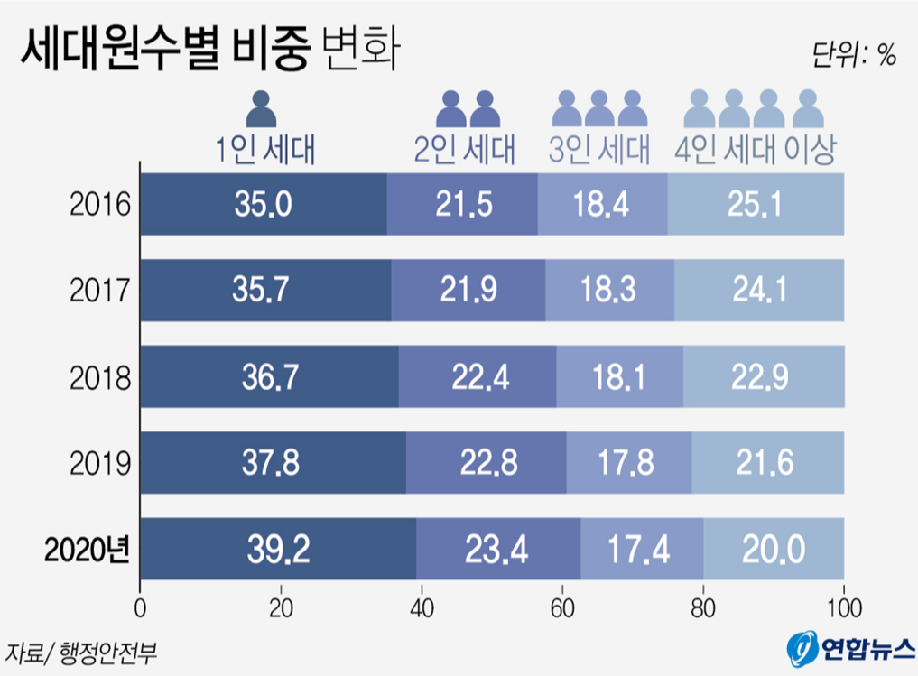 “정말 그렇네요! 인구는 줄었는데 세대수는 늘었단 말은 한 세대당 인구가 줄어들었다는 뜻이겠어요.”