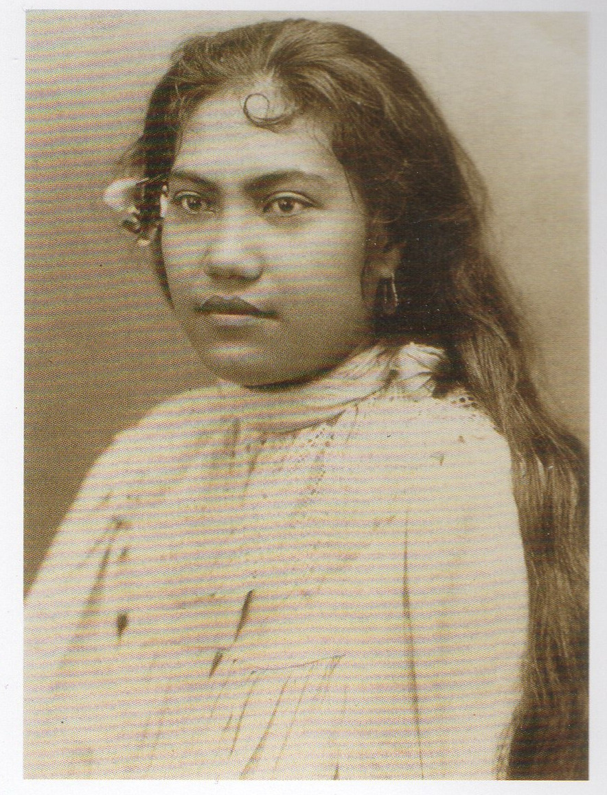 왼쪽의 사진은 타히티 도착 후 그가 결혼한 14세(만 13세)의 첫 부인의 모습이다.