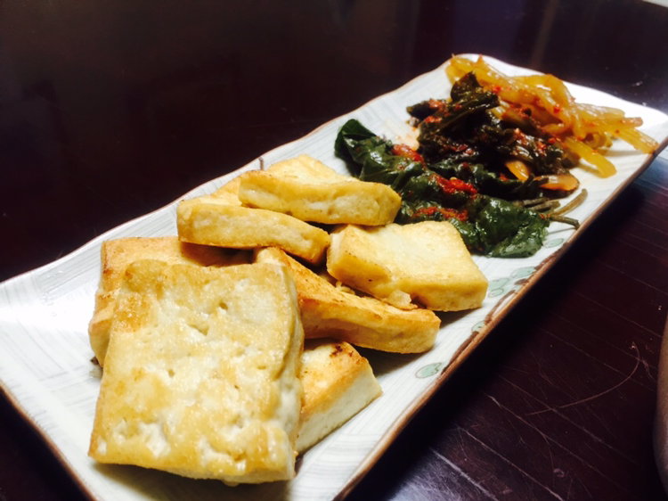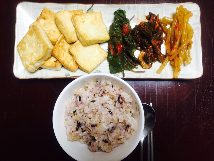 두부를 먹기 좋게 자르고, 소금으로 약간 간을 한 뒤 식용유를 두른 프라이팬 위에 올려놓았습니다. 더운 날씨에 두부를 굽느라 땀은 비 오듯 쏟아졌지만 점점 맛있어 보이는 색깔로 변해가는 두부를 보면서 왠지 모를 흐뭇함이 느껴졌습니다. 생각보다 오랜 시간이 지나고(아마 더위 탓에 시간이 느려진 것처럼 느껴졌을 테지요) 먹기 좋게 익었을 때쯤 그릇에 올려 식탁으로 가져갔습니다. 그리고 대망의 첫 끼니를 해결했습니다. 평소에 잘 안먹던 두부부침도 이 순간에는 정말 꿀맛이었습니다.