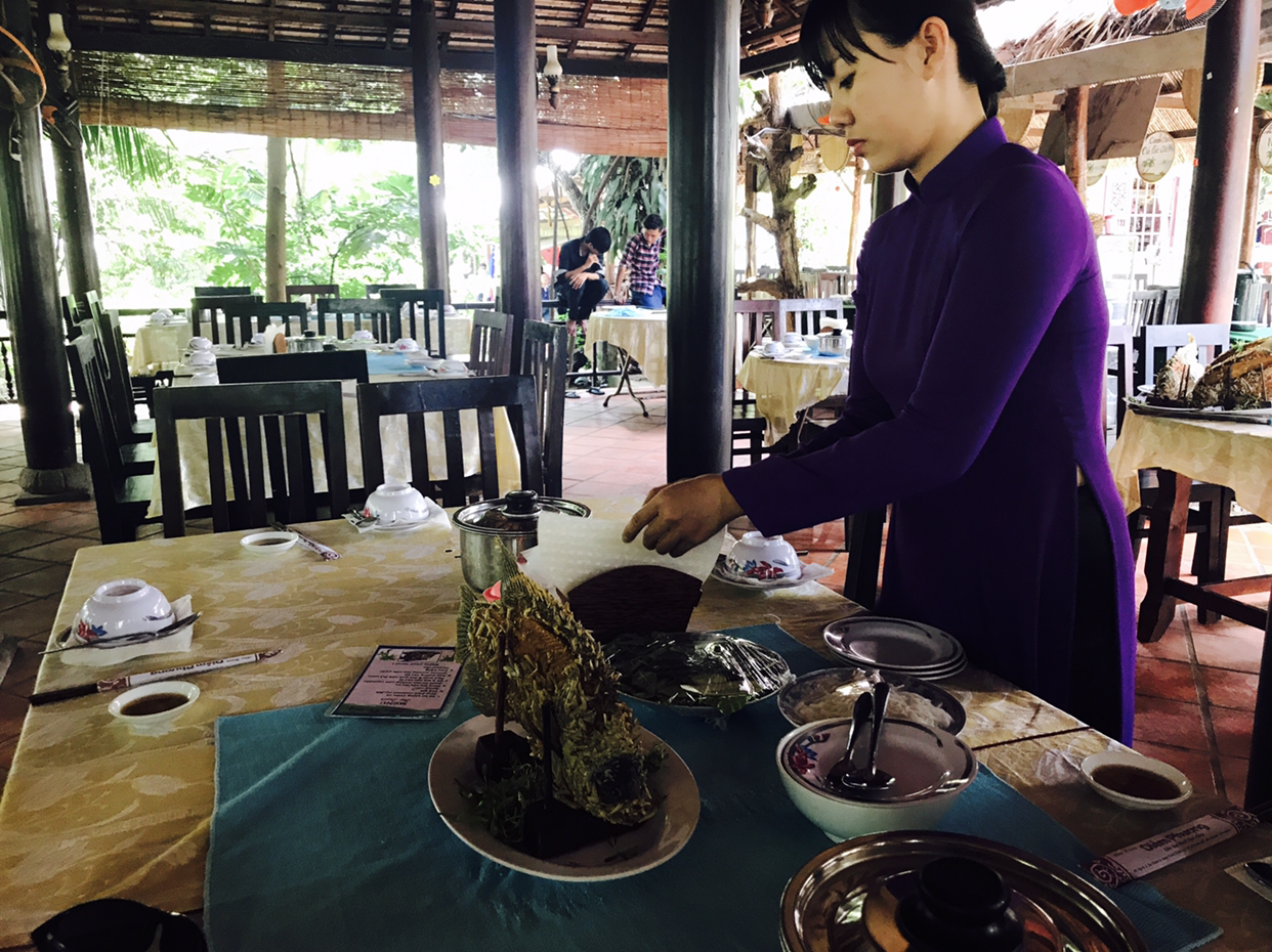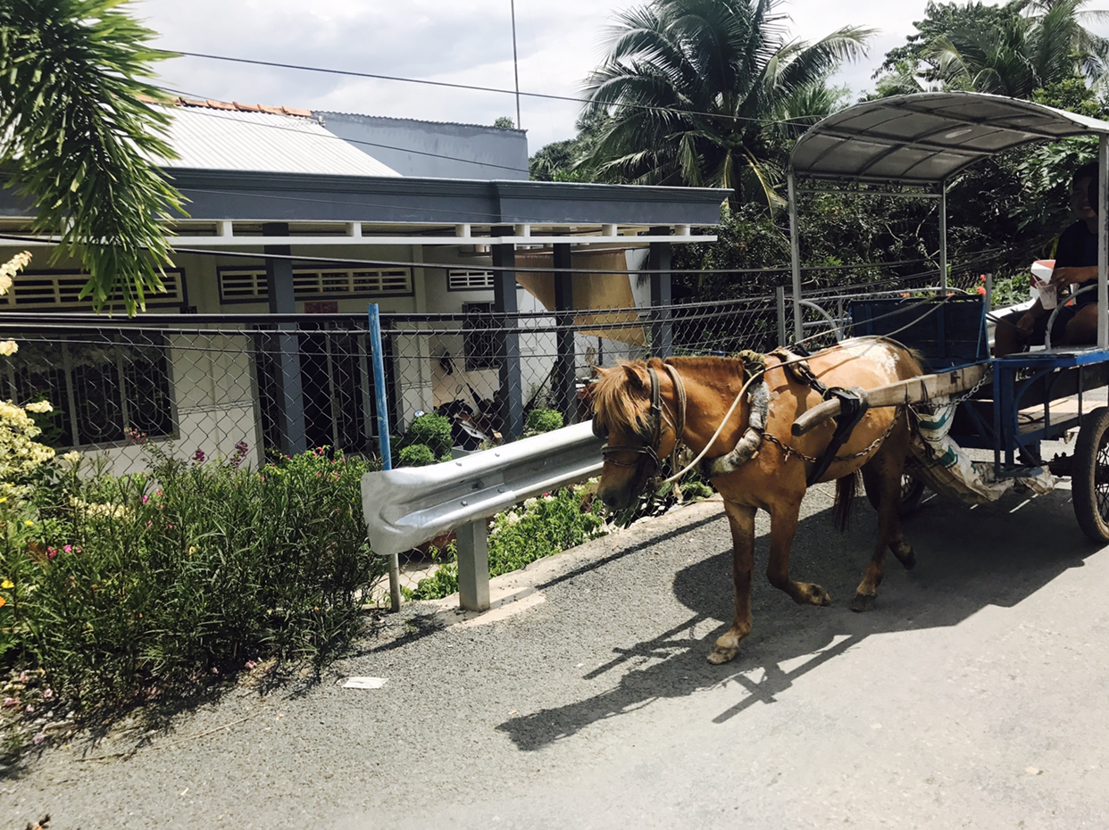 점심을 먹고난 뒤 다시 배를 타고 다른 섬으로 향했다. 넓고 넓은 메콩강을 따라가다가 중간에 지류 비슷한 곳으로 들어갔다. 밀림의 모습을 하고 있는 곳 사이의 수로를 거슬러 갔다. 벌꿀차를 마시고 마차를 타는 시간이 지나고 음악공연을 봤다. 팁을 요구하는 경우가 많다고 해서 걱정했는데 음악 공연을 제외하고는 따로 팁을 요구하진 않았다. 음악 공연을 하는 사람의 정성을 생각해 조금의 팁을 두고 왔다.