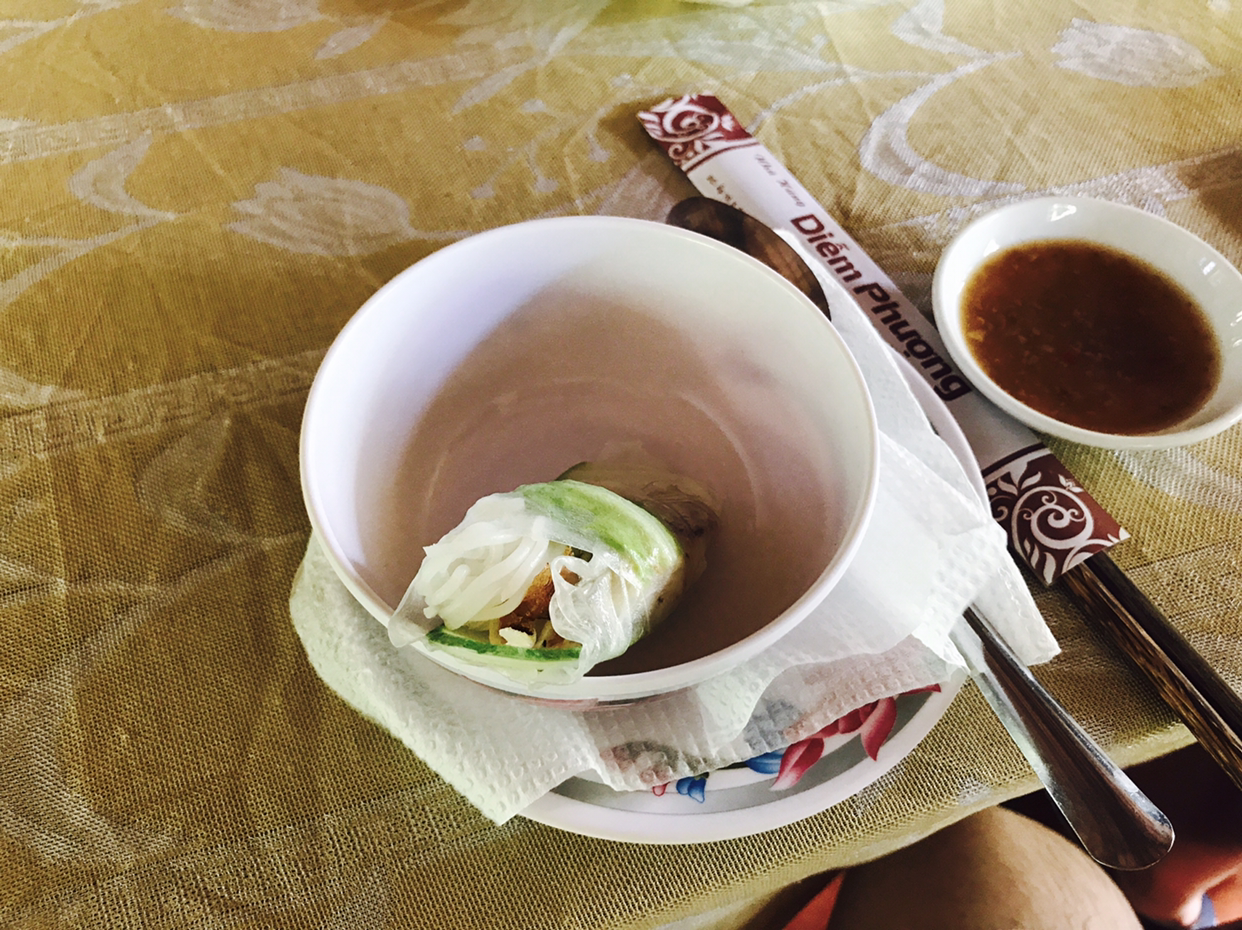 엘리펀트 피쉬라는 거대한 생선을 발라 라이스페이퍼에 월남쌈처럼 만들어주는 점심을 먹었다. 너무나도 더웠기 때문에 맥주와 함께 우걱우걱 먹었다. 맛은 그저 그랬다. 짜조만 맛있었다.