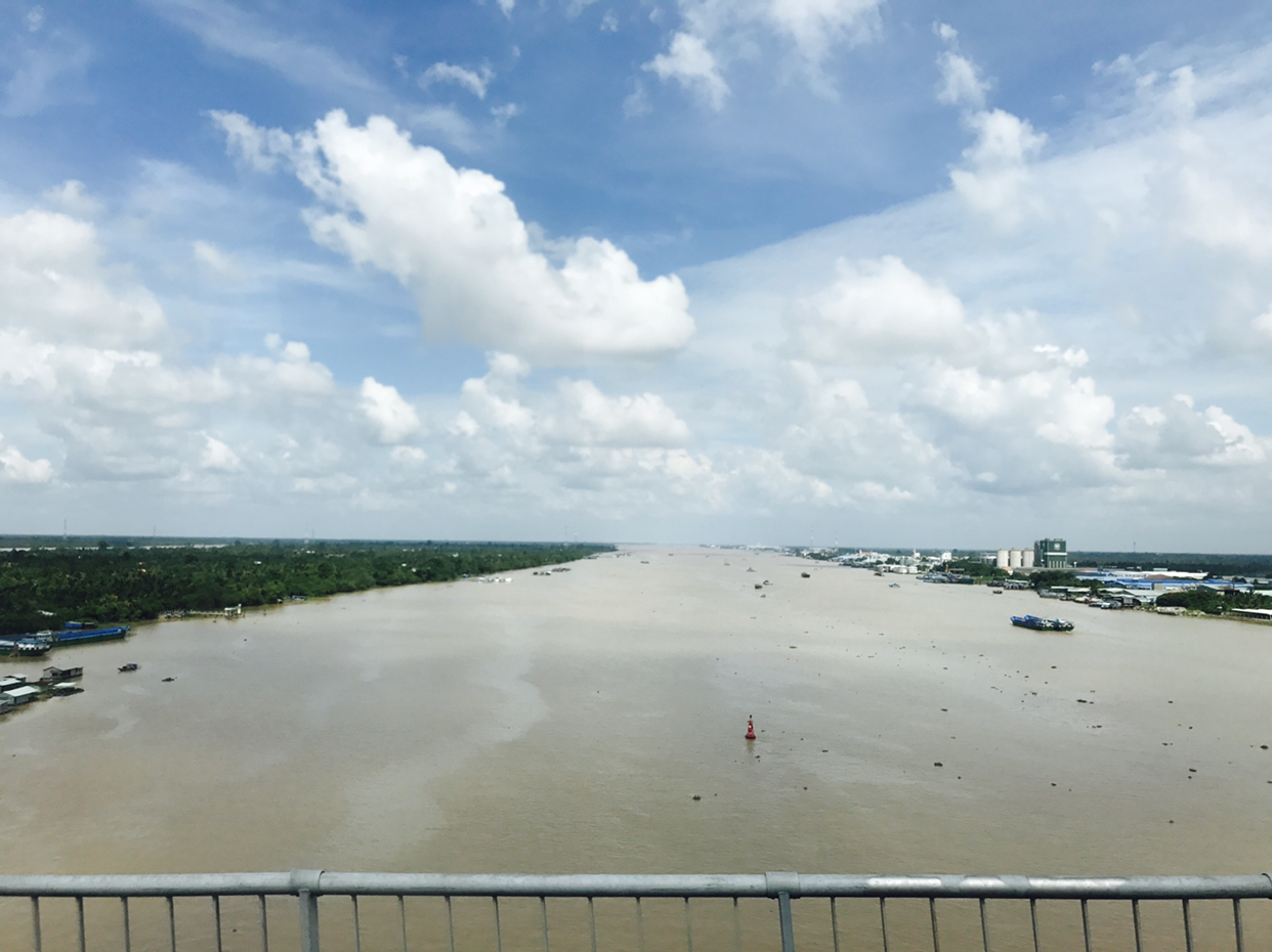 전날 신투어리스트에서 예약하고 아침 일찍 출발시간에 맞춰 신투어리스트로 향했다. 신투어리스트에는 투어를 떠나는 많은 사람들이 기다리고 있었다. 티켓을 받고 시간이 되기를 기다려 메콩강으로 떠났다. 에어컨이 나오는 버스에서 푹 자고 일어나니 메콩강이 한 눈에 보이는 거대한 다리를 건너고 있었다. 엄청난 강폭에 놀랐고, 물이 많은 것에 놀랐고, 황토빛 물 색깔에 또 놀랐다. 메콩강에 왔다.