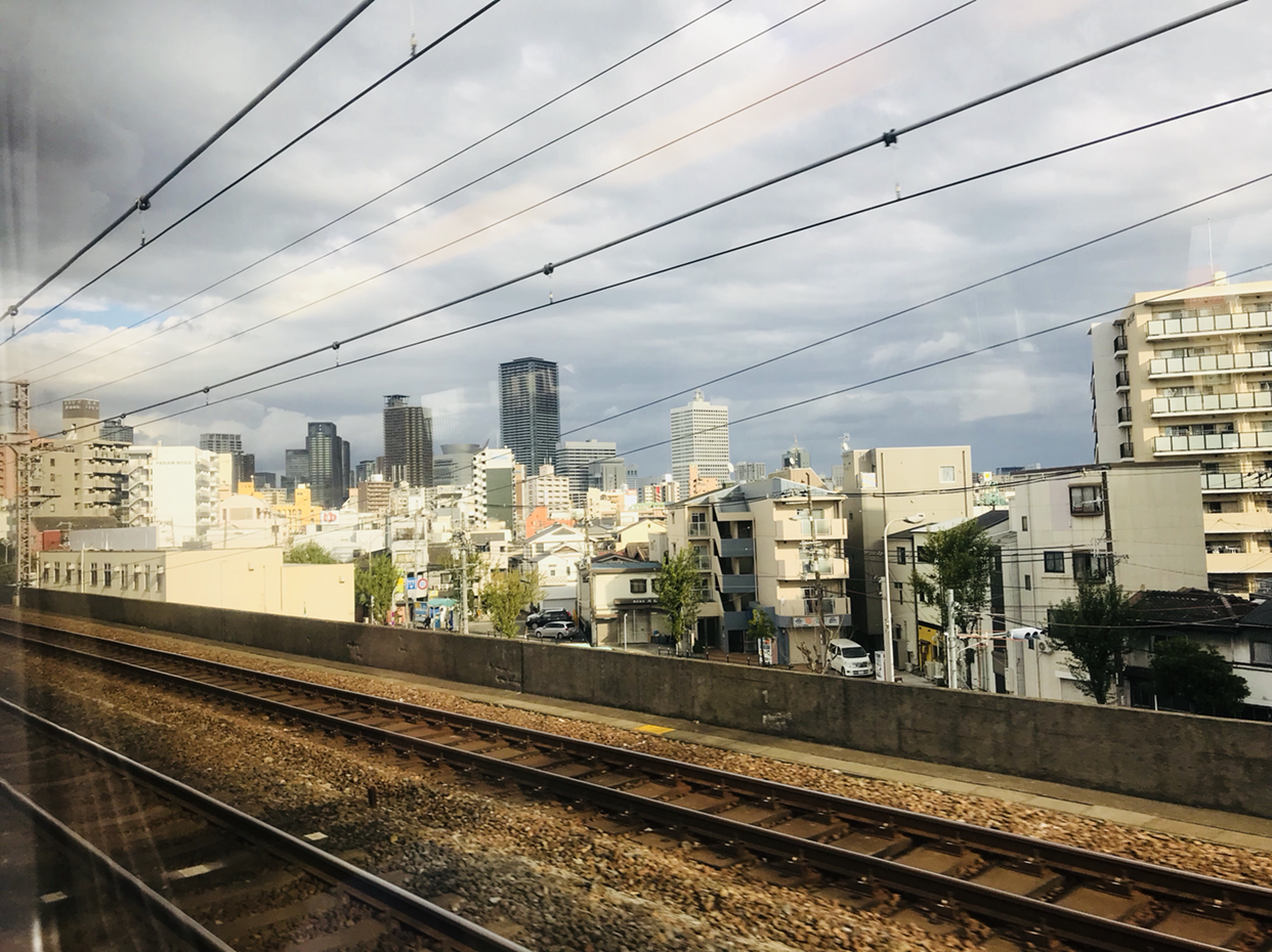 첫 번째 기차인 하루카를 타고 신오사카로 향하는 길. 날씨는 흐리지만, 낯익은 모습들로 가득합니다.