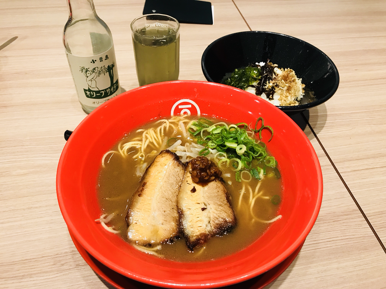 오카야마에 도착하자마자 점심을 먹었습니다. 점심 메뉴는 라멘입니다. 오카야마 근처 쇼도지마라는 섬이 이 식당의 주요 테마인 듯합니다. 쇼도시마의 간장, 쇼도시마의 올리브 등이 라멘에 들어갑니다. 세트메뉴를 시키면 쇼도지마의 전통 영양밥까지 줍니다. 그중 제일 신기했던 것은 올리브 사이다입니다. 사이다에 올리브 맛이 나다니 신기하기 짝이 없습니다. 생각보다 맛있었습니다. 라멘은 역시나 조금 짰습니다. 일본 음식이 전체적으로 짠 것 같습니다. 영양밥 하고 같이 먹으니 짠맛이 조금은 중화되는 것 같기도 했습니다.