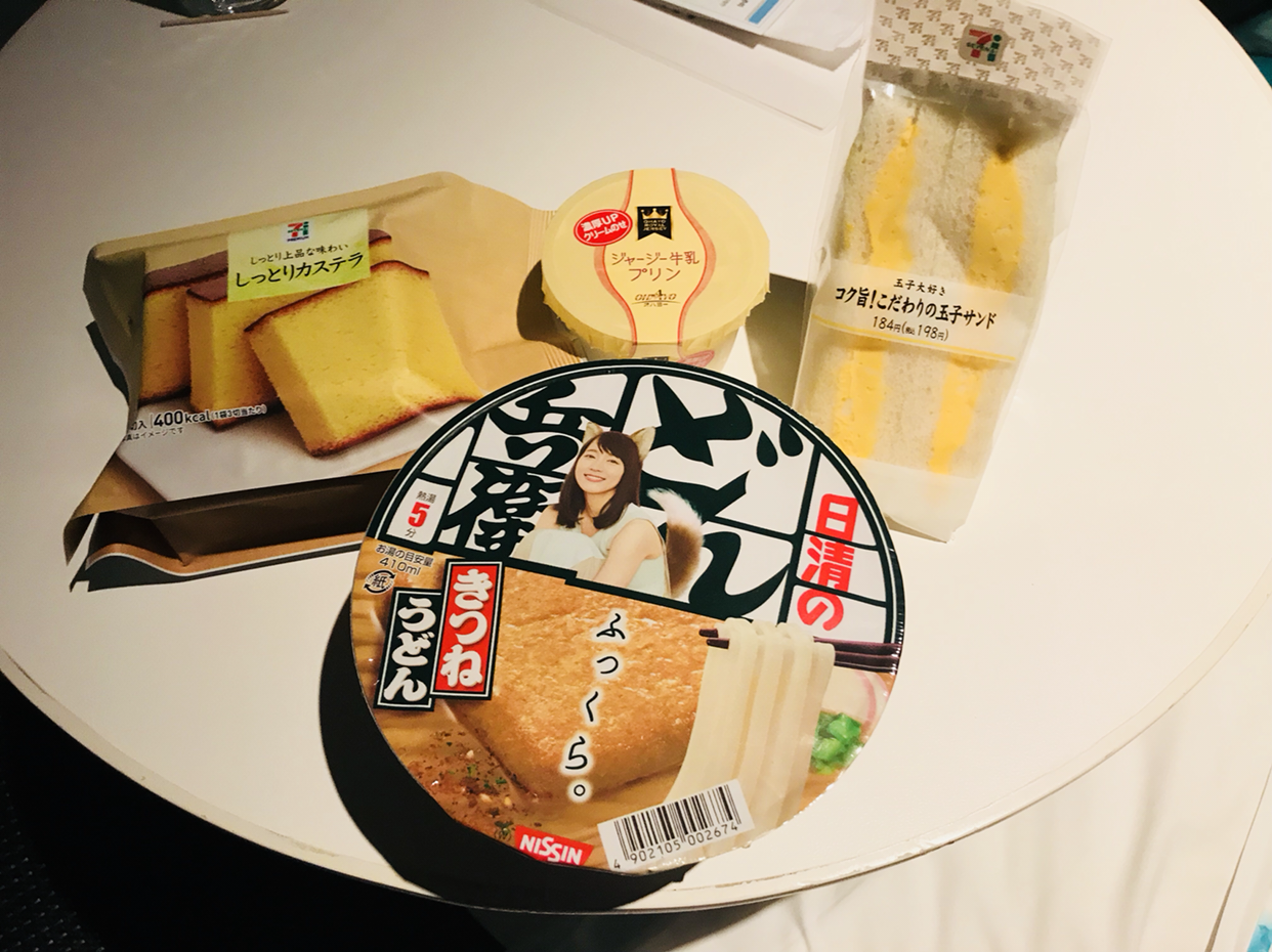 오늘은 에키벤으로 시작하지 않습니다. 한국으로 돌아가는 날이기에 달리 기차 탈 일정이 없었습니다. 전날 편의점에서 맥주, 간식과 함께 유부우동과 푸딩 그리고 샌드위치를 샀습니다. 유부우동은 정말 맛있었습니다. 농심 튀김우동보다 훨씬 맛있었습니다!