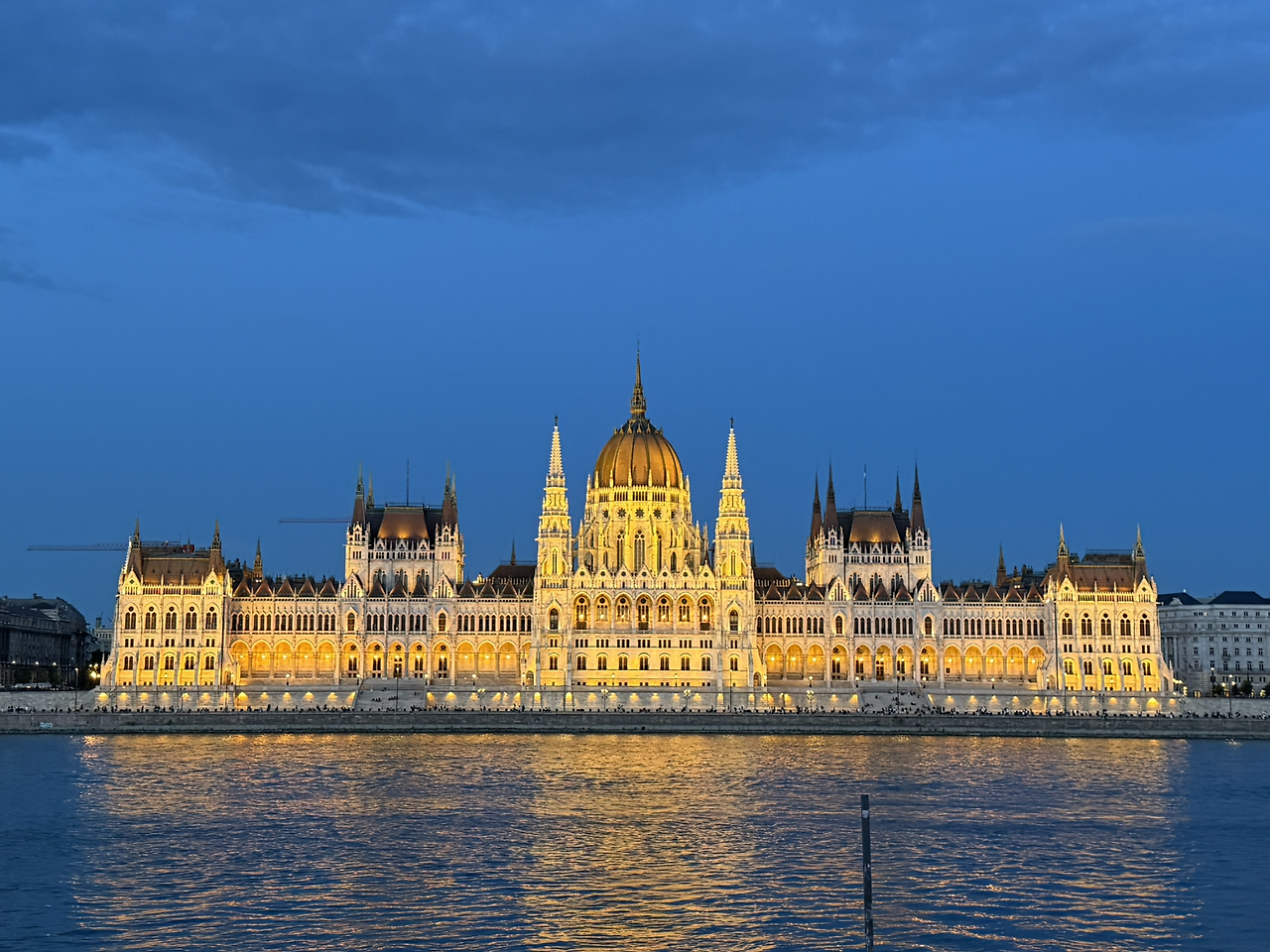 설렘과 행복함 그리고 평화로움이 가득했지만, 시차로 인한 피곤함이 몰려오기 시작했다. 그래도 야경을 포기할 수는 없어 졸음을 참으며 기다렸다. 일몰 시간이 지났지만 아직 노을이 남아있고, 국회의사당의 불빛도 켜지기 전이라 얼마나 더 기다려야 하는지 궁금해하던 찰나, 한국인 단체 관광객들이 버스에서 우르르 내리는 것을 보고 '이제 곧 켜지겠구나'하는 희망이 생겼다. 아니나 다를까, 9시가 되자 하나 둘 불빛이 켜지기 시작했고 저녁 어스름과 불 켜진 국회의사당이 만나 아름다운 부다페스트의 야경을 뽐내기 시작했다. '우와'하는 감탄사만 가득한 상태에서 야경을 감상했다. 부다페스트에 오길 잘했다는 생각이 절로 들었다.