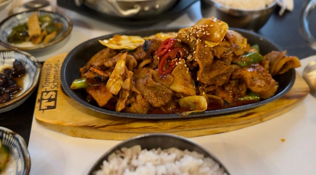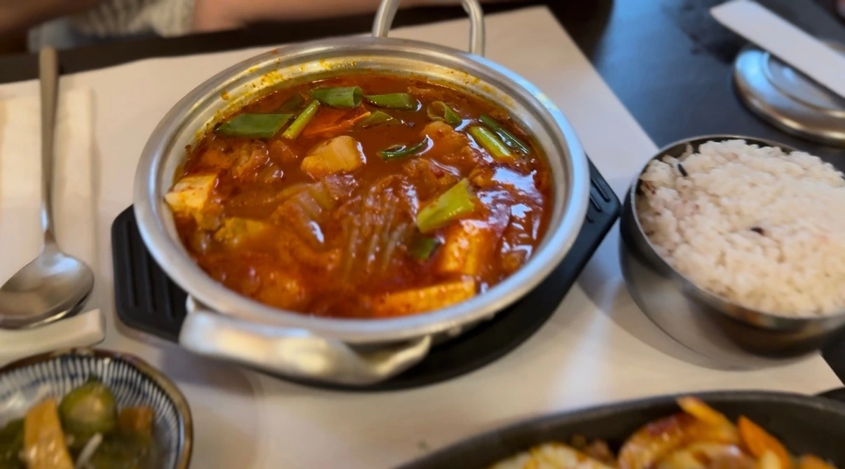 호텔에서 쉬다가 저녁 시간에 맞춰 숙소를 나섰다. 오늘의 저녁은 한식! 앞서 이야기한 것처럼 나나 짝꿍이나 원래 해외에서 한식을 찾아서 먹는 스타일이 아닌데 전 날도 그렇고 익숙한 음식들이 계속 생각났다. 한식당에 들어가니 생각보다 외국인들이 많았다. 식당 공간과 음식 구성을 보니 충분히 외국인들에게도 매력적인 식당이라는 생각이 들었다. 한국인의 소울푸드인 김치찌개와 제육볶음 그리고 떡볶이를 시켜서 야무지게 먹었다. 전 날의 매운 우육면과 볶음밥으로 해결되지 않았던 것을 한식으로 단 번에 해결! 떠난 지 며칠 안 됐지만 그리웠던 고국의 맛이었다. 소주와 함께하고 싶은 마음이 굴뚝같았지만 일정에 영향을 미칠 것 같아 참고 맥주와 함께했다.
