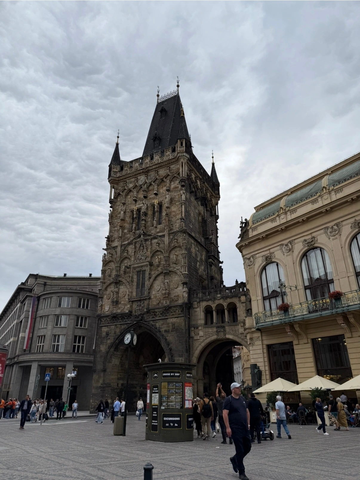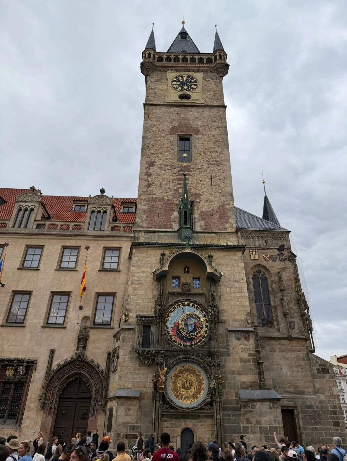 점심을 먹고 트램을 타고 프라하 구시가지로 향했다. 화약탑부터 시작해 구시가지 광장, 프라하 천문시계를 거쳐 카를교까지 걸어서 산책하는 코스였다. 관광지가 구시가지에 몰려있다 보니, 가는 길은 사람들로 가득했다. 다들 주변 건물을 두리번거리고, 사진 찍는 모습이 영락없는 관광객들이었다. 우리도 그들과 똑같은 모습으로 건물들을 구경하고 사진 찍기 여념 없었다. 관광객이 제일 많은 곳은 프라하 천문시계 앞이었다. 정각이 되기 5분 전쯤 도착해 사람들이 더 많았다. 정각이 되면 시계탑의 이벤트가 있을 거라는 느낌이 있어 정각이 될 때까지 기다렸다. 역시나 시계 위 조그마한 창문에서 인형들이 한 바퀴 도는 모습을 볼 수 있었다. 별거 아닌 소박한 게 나름 매력 있었다.