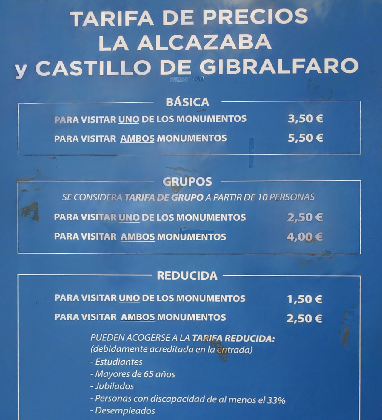 『 히브랄파로 성과 알카사바의 관람 안내 (2023년 11월 기준) 』