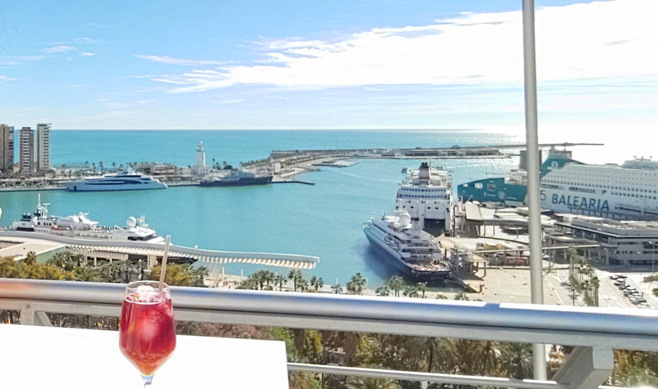 AC호텔 루프탑 바에서 보이는 말라가 항구와 지중해