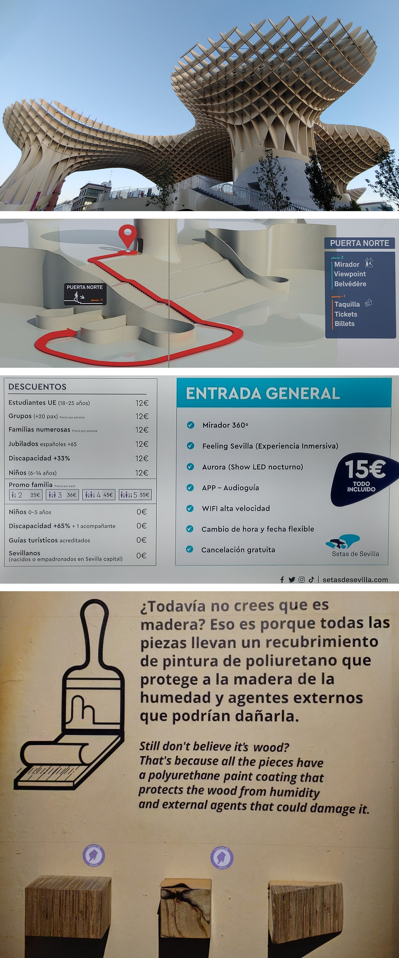 메트로 파라솔 위의 전망대로 가는 길은 0층에서 시작되었다. 입장권이 15유로였는데 밖에서 보는 것으로 충분하다며 돌아가는 사람들도 있었다. 나도 입구에 도착해서야 가격을 알았지만 세비야에 온 가장 큰 목적이었기 때문에 망설이지 않고 입장권을 샀다. 개인적인 차이가 있을 수 있지만 전망대를 모두 본 뒤에는 15유로가 하나도 아깝지가 않았다.