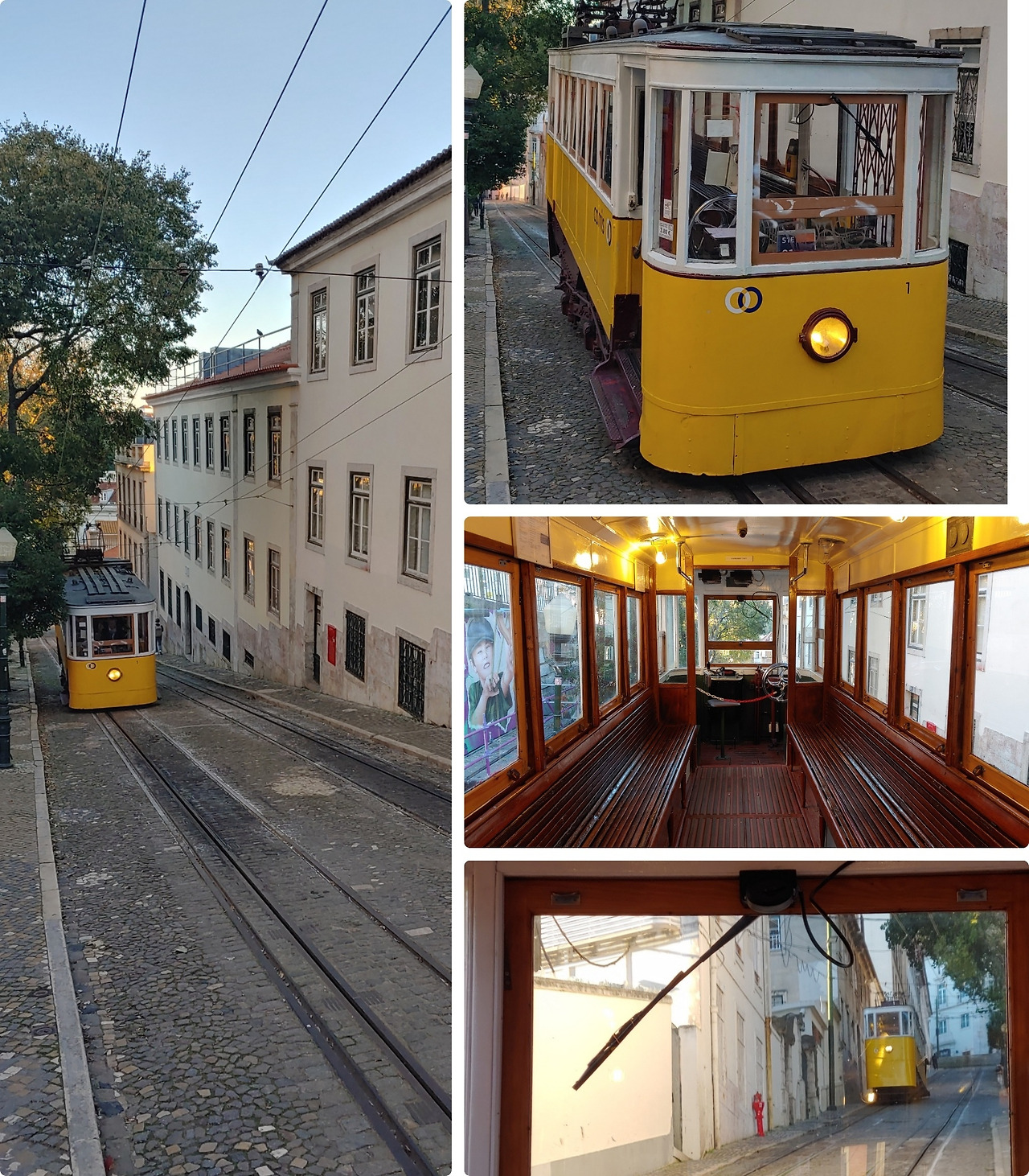 다음은 카르모 수녀원에서 도보 10분 거리에 있는 글로리아 엘리베이터(Elevador da Glória)를 타러 갔다. 이름에 엘리베이터가 붙어있지만 홍콩의 피크트램과 비슷한 산악 트램이었다. 홍콩의 피크트램보다 선로의 길이가 더 짧고 트롤리의 모습이 리스본의 28번 트램과 더 비슷하다는 것은 다른 점이었다. 이번에도 전날 구입한 Navegante로 탑승이 가능했다. 평일 8시 출근 시간대에는 10분에 한 번씩 트램이 다녔기 때문에 기다리지 않고 바로 탈 수가 있었다.