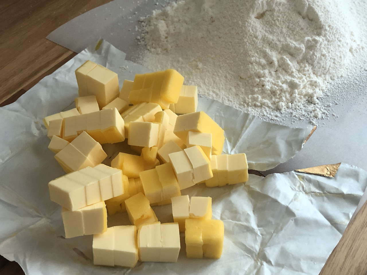 전부터 홈베이킹을 할 때마다 느끼는 거지만, 필요한 재료를 미리 계량을 해야 한다는 것이다. 미리 계량을 하고 준비를 하지 않으면 온 집안이 반죽으로 더러워지기 때문이다. 손에 반죽이 묻은 손으로 찬장을 열면 그 반죽이 찬장 손잡이에 묻어 화석이 되고, 닦기가 여간 힘든 게 아니다. 밀가루도 미리 체에 걸러 놔야 하는데, 그렇지 않고 그냥 넣어버리면, 빵의 질감이 달라지는 불상사가 일어난다.