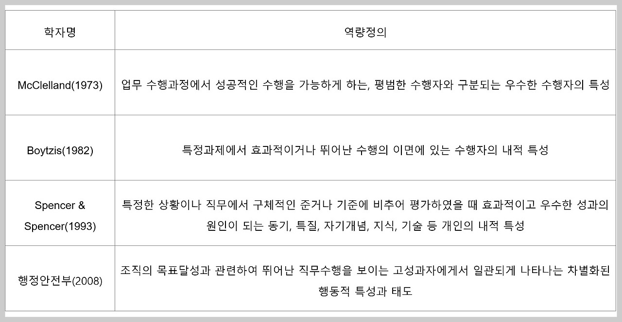 우리나라 과거 인사관리가 연공서열 또는 직무 중심으로 이루어져 왔다면 2000년대 후반부터는 역량 기반 인사관리가 정부기관, 공공기관, 민간기관 의 중요한 기준으로 채택되어 왔습니다.