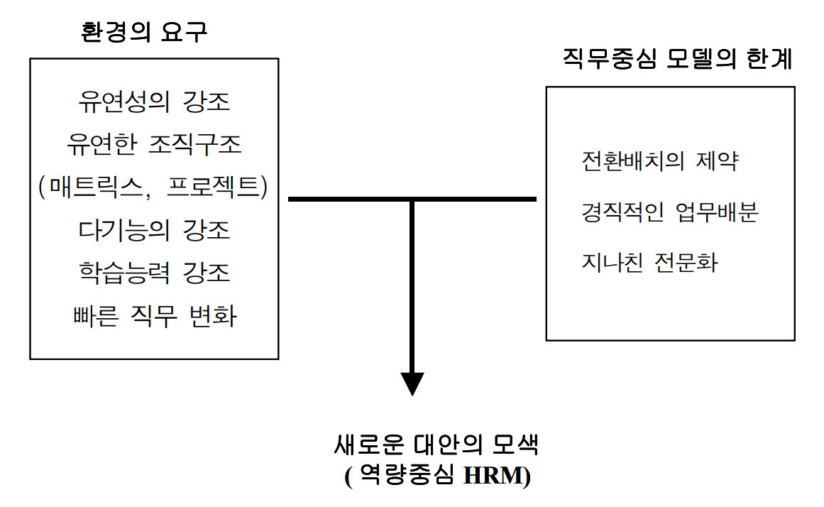역량 기반 인사관리의 등장 배경 (출처: 박우성, 2002)