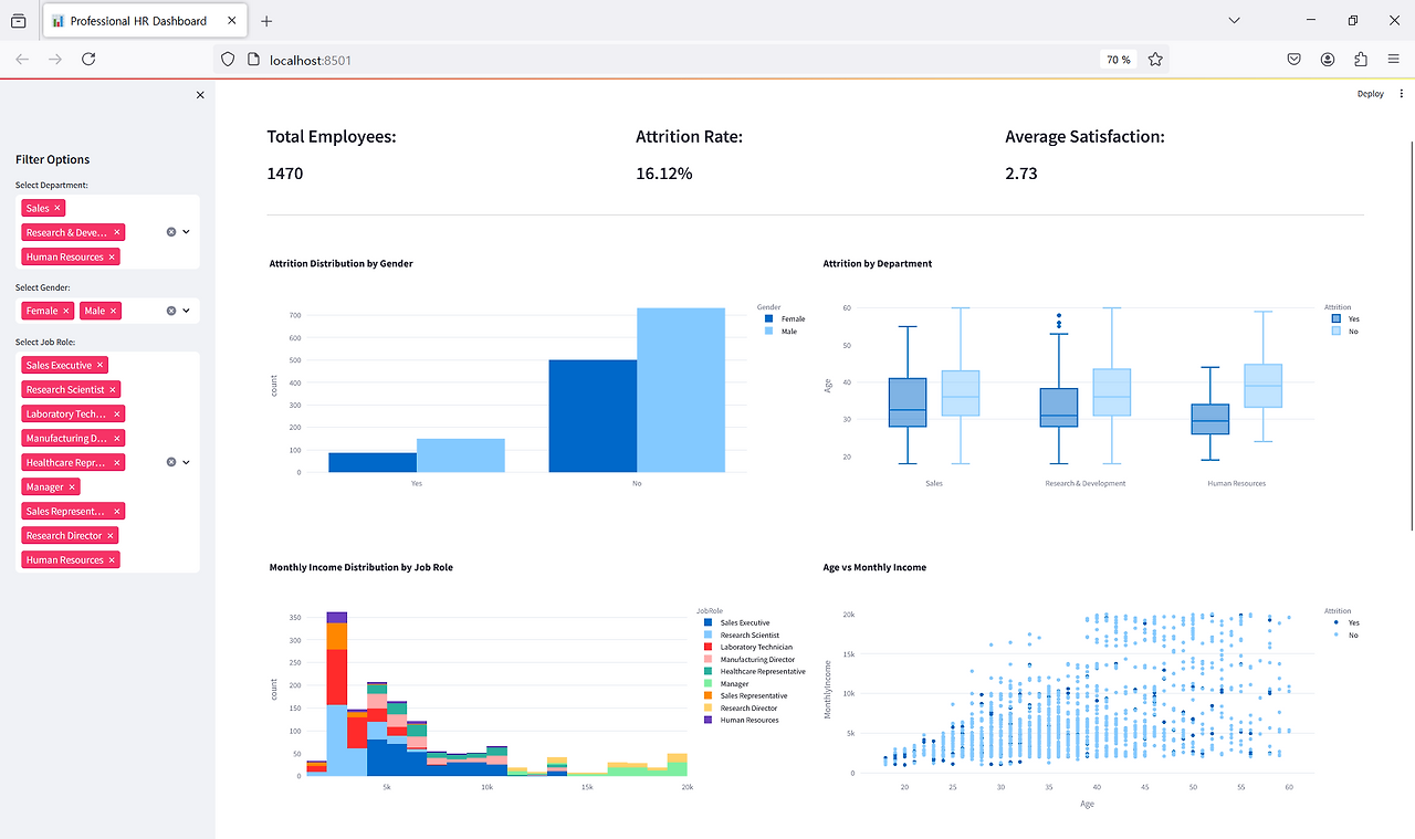 - 실제 HR 대시보드처럼 한 페이지에 모든 정보가 잘 보일 수 있게 그래프를 잘 배치해줘.