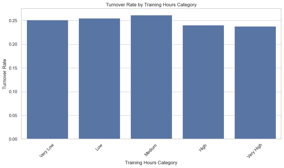 1. 교육시간은 이직 의도에 부정적 영향을 미침 (교육시간이 많을수록 이직 가능성 감소)