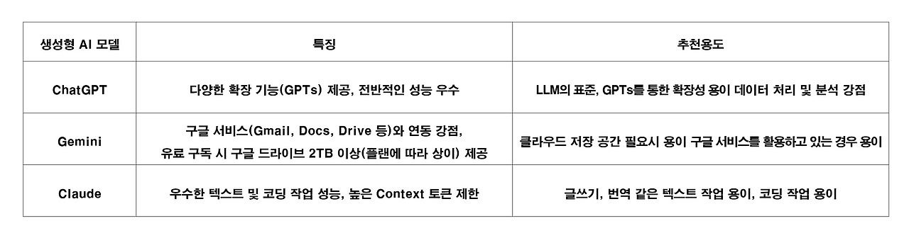ChatGPT, Gemini, Claude 특징 및 ChatGPT 플랜