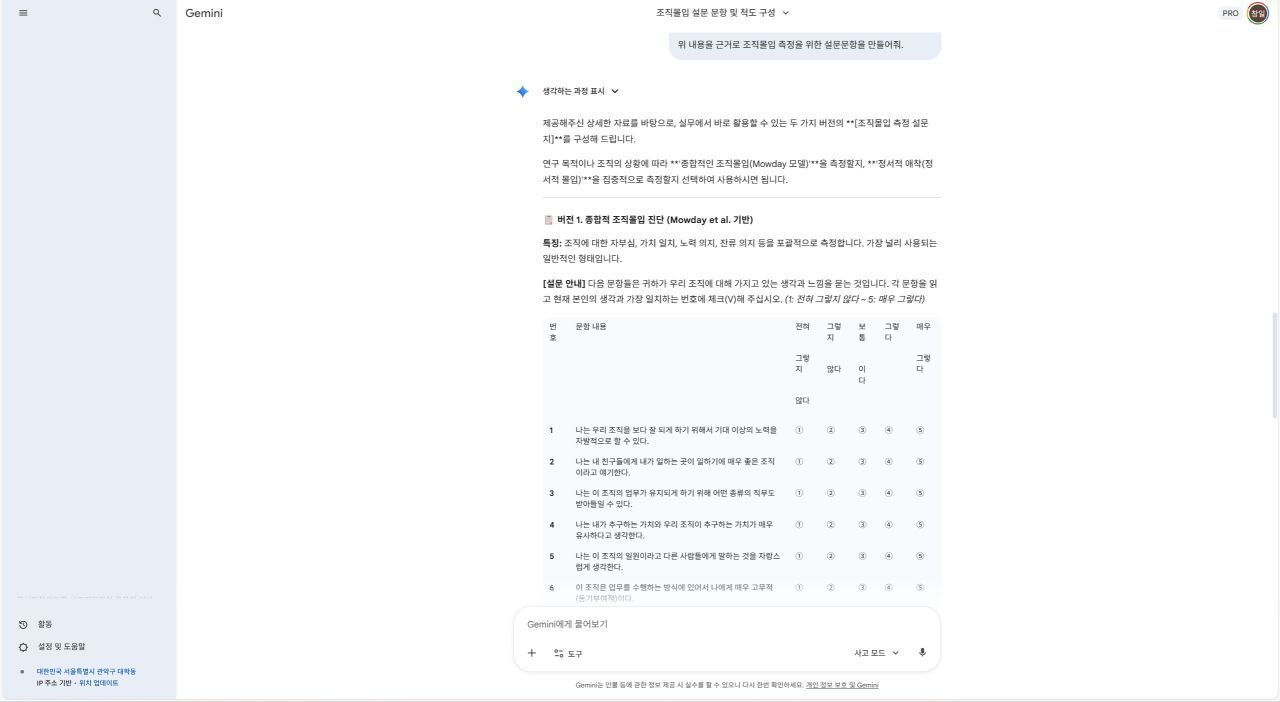 NotebookLM이 뽑아준 문항들은 다소 학술적이고 딱딱할 수 있습니다. 이를 우리 조직의 언어로 번역하는 작업이 필요합니다. 이때 Gemini를 활용해 보세요. 앞서 도출된 결과를 바탕으로 우리 조직의 톤 앤 매너에 맞게 수정을 요청하는 것입니다.