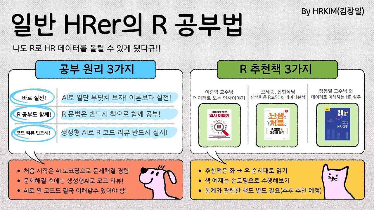 몇 년 전만 해도 저에게 'R'은 그저 저에게 코딩 프로그램일 뿐이었습니다. 숫자와 데이터보다는 사람의 마음과 조직의 문화를 고민하는 것이 HR의 본질이라 믿었기에, '코딩'은 저 멀리 개발자들의 전유물처럼 느껴졌죠. 하지만 지금의 저는 R을 통해 데이터를 직접 분석하고, 인사이트를 시각화하며 조직의 내일을 이야기합니다. "문과생인 나도 할 수 있을까?"라는 의문이 "누구나 할 수 있다"는 확신으로 바뀌기까지, 제가 직접 겪으며 깨달은 'HR 실무자를 위한 R 학습법'을 공유하고자 합니다.