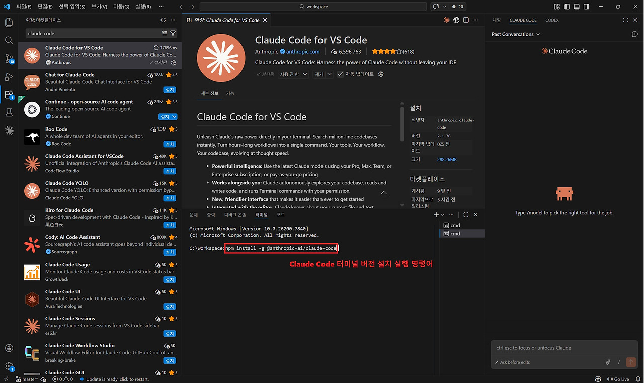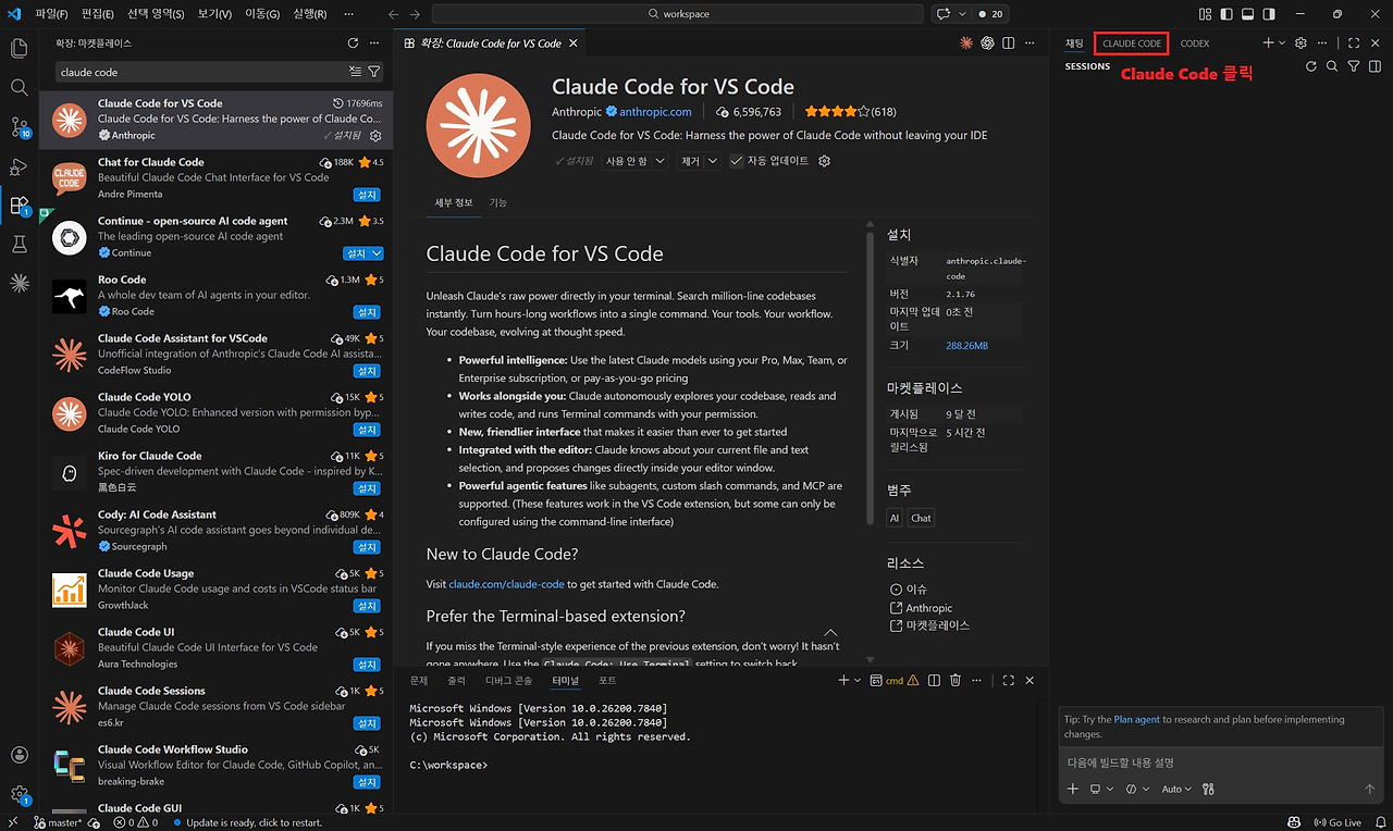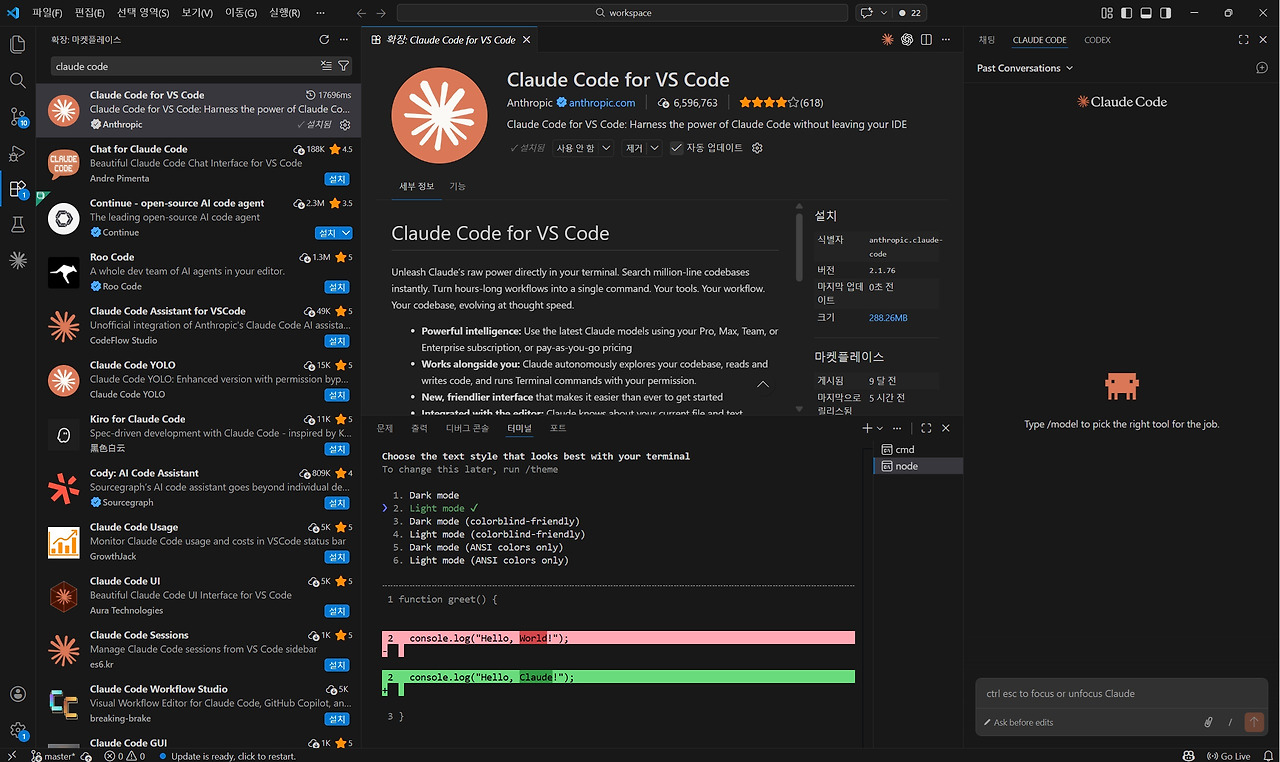 VS Code 확장 프로그램 Claude Code