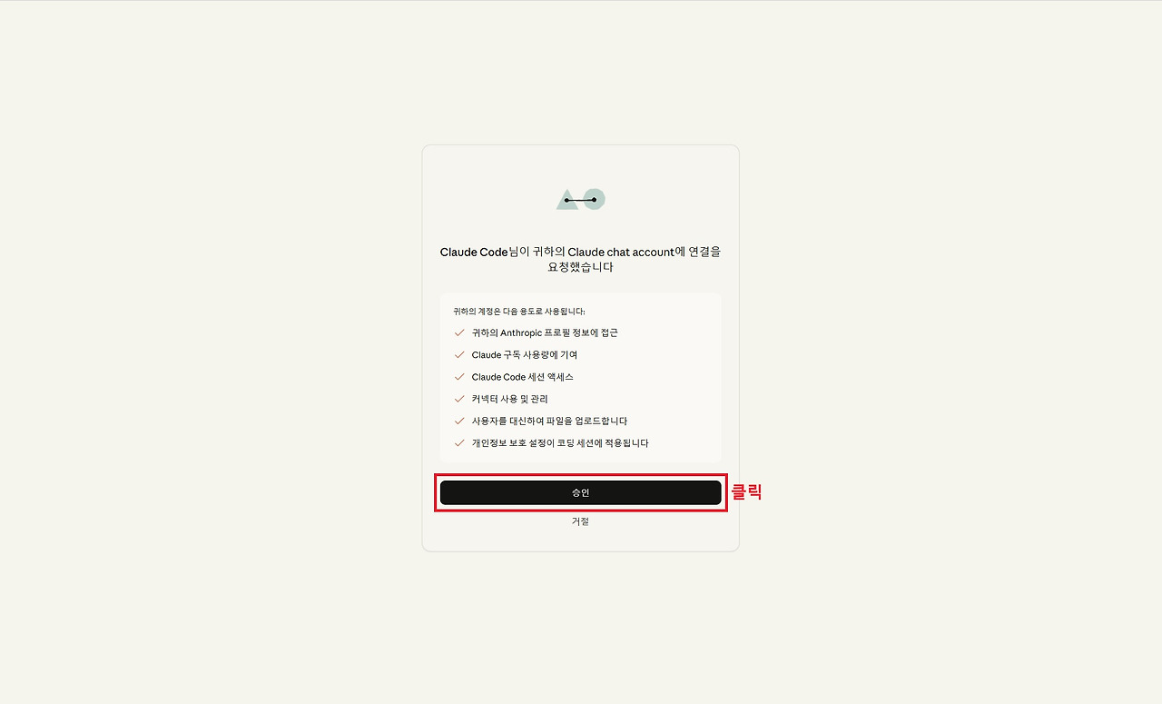 로그인 방식을 선택하면 브라우저가 자동으로 열리면서 Claude 계정 연결 승인 화면이 나타납니다. 여기서 ‘승인’ 버튼을 클릭하면 VS Code와 Claude 계정이 연결됩니다. 연결이 완료되면 터미널에 다음과 같은 메시지가 표시됩니다. 아래와 같이 'Login successful' 메시지가 나타나면 Claude Code 설정과 로그인 과정이 모두 정상적으로 완료된 상태입니다. 이제 터미널 환경에서 Claude Code를 활용하여 코드 작성, 수정, 분석 등의 작업을 수행할 수 있습니다.