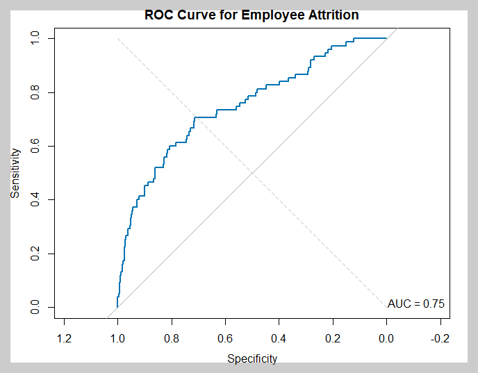 plot(roc_data, main = "ROC Curve for Employee Attrition", col = "#0072B2")