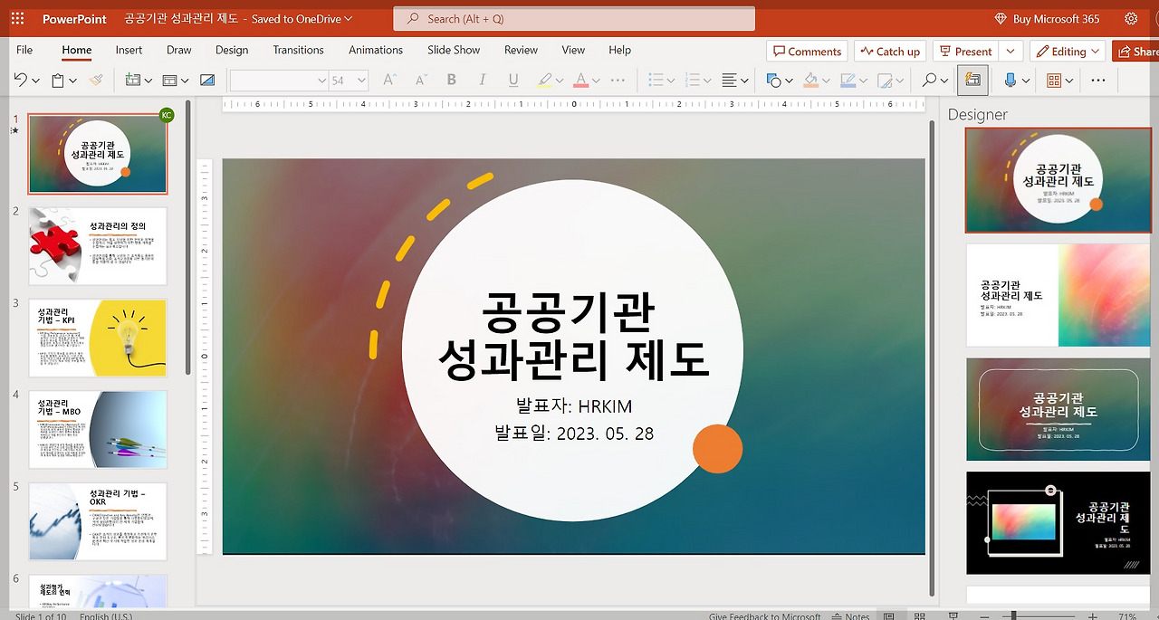 Microsoft Office 365의 Designer 기능은 PPT 슬라이드에 전문적인 디자인 요소를 자동으로 적용하며, 슬라이드의 레이아웃, 색상, 폰트 등을 조정하여 전체 디자인의 일관성을 보장합니다. 이를 통해 디자인에 소요되는 시간을 크게 줄이고, 더욱 전문적이고 독특한 PPT를 쉽게 제작할 수 있습니다.