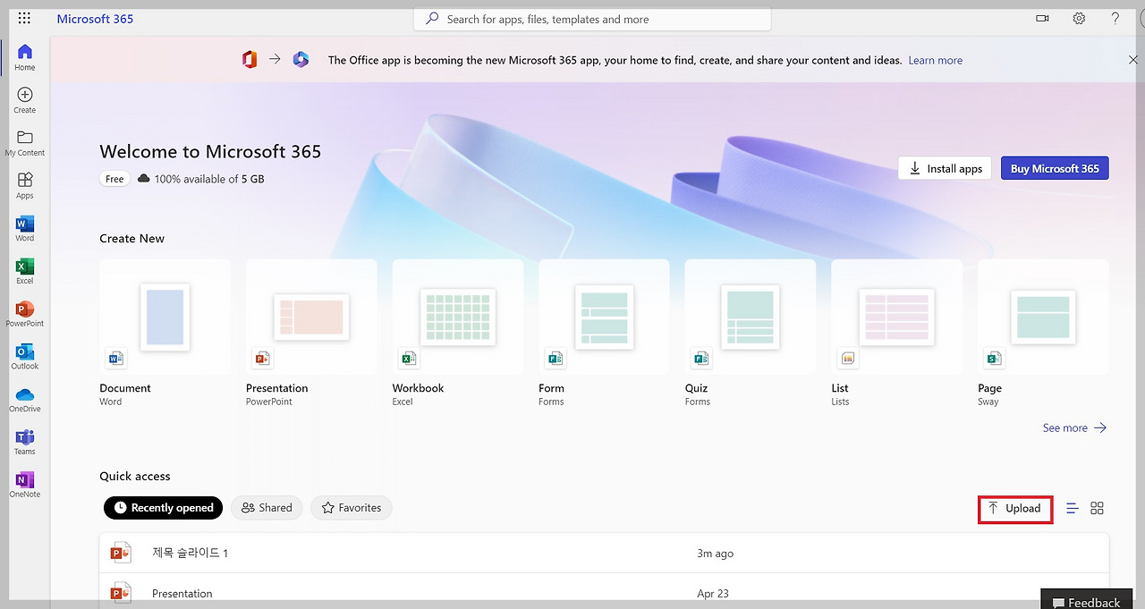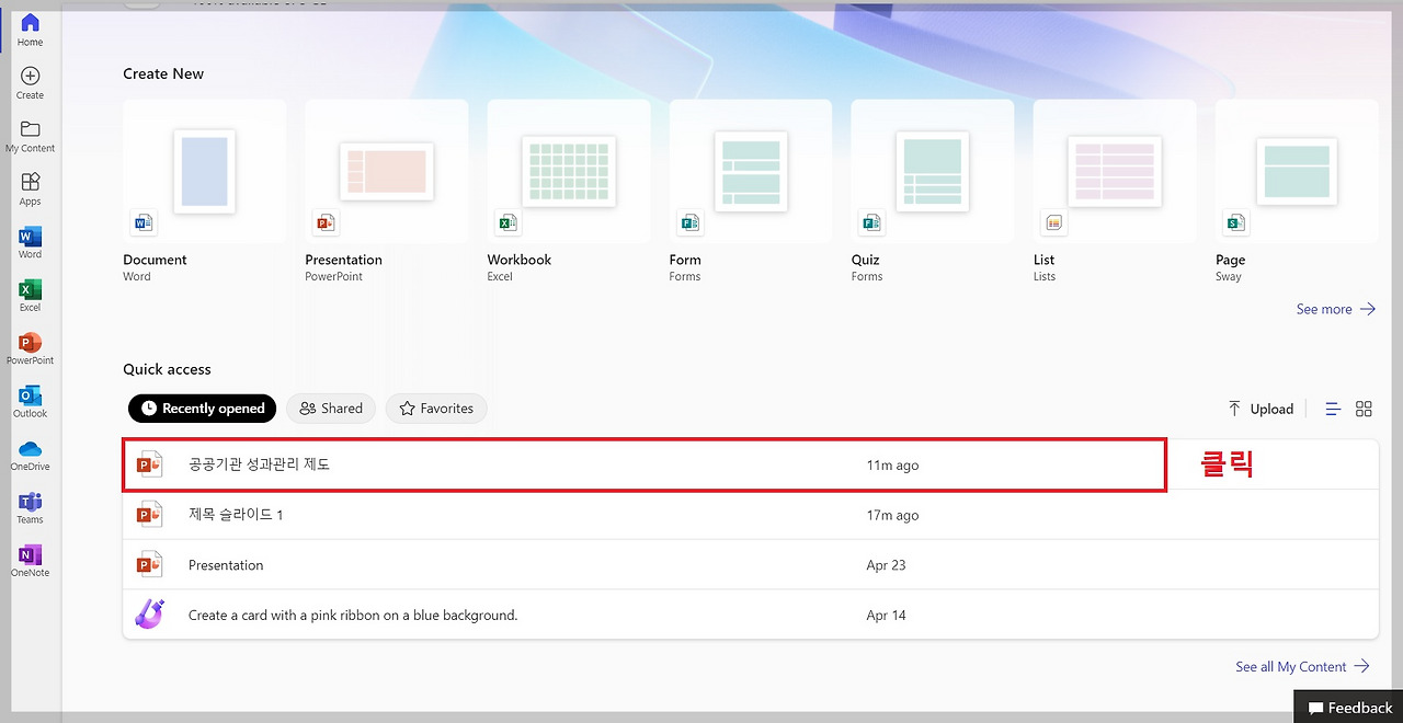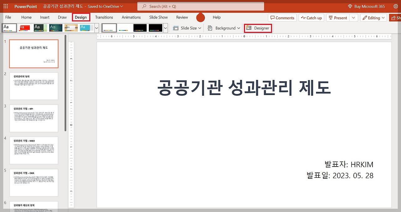 Microsoft Office 365 Designer는 MS Office 365를 정기 구독하는 사용자만 이용할 수 있는 유료 서비스입니다. 그러나 MS Office 365의 웹 버전 Power Point(해당 링크를 통해 웹에서 PPT를 사용할 수 있습니다)에서는 무료 사용자도 Office 365 Designer 기능을 이용할 수 있습니다. 그래서, 이번에는 오프라인에서 작성한 PPT 파일을 웹 버전 Power Point로 이동시켜, Designer 기능을 활용해 보도록 하겠습니다.