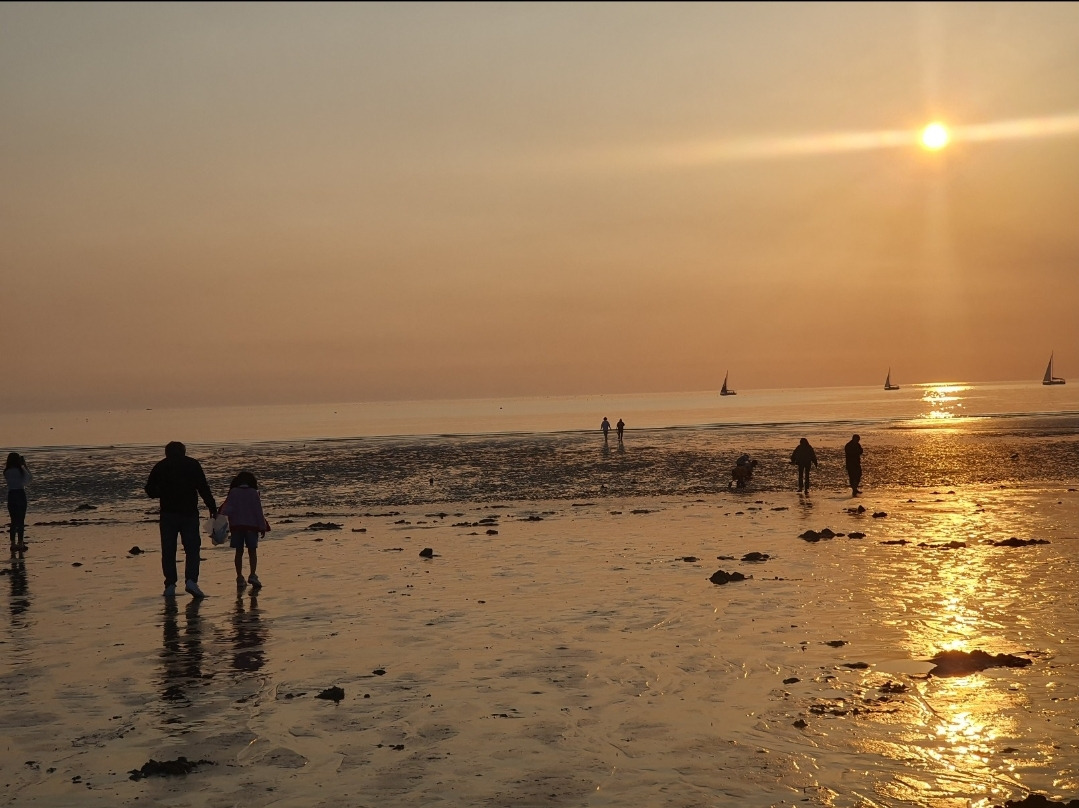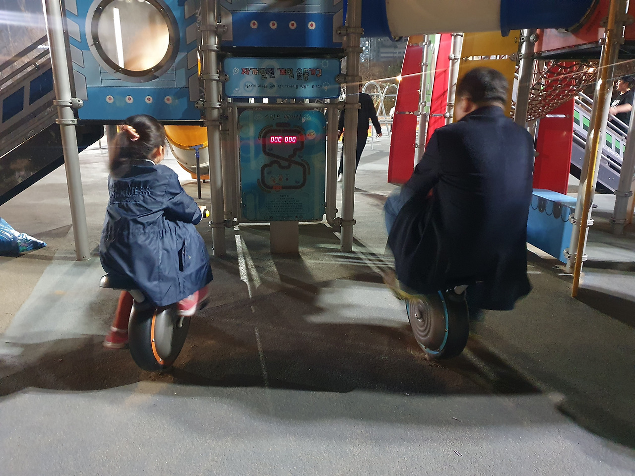 (좌) 공원 놀이터에서 자전거 시합 토끼와 곰 같네요. ㅎ (우) 갯벌에서 딸과 함께 갯벌 걷기