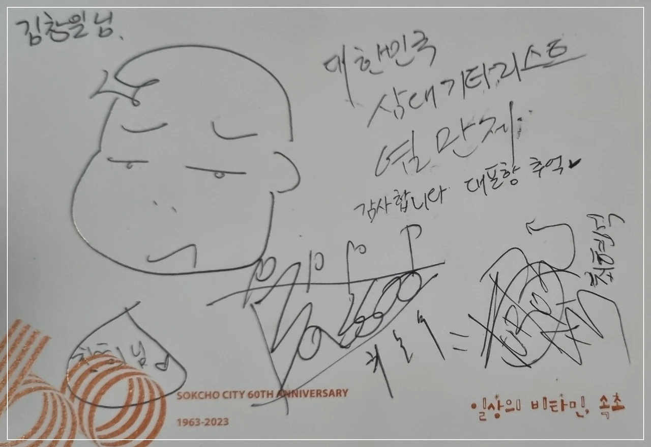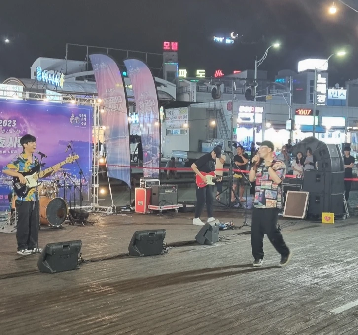 이번주 주말은 가족들과 함께 강원도 고성으로 힐링여행을 왔습니다. 저는 아름다운 바다 관경을 배경으로 휴식을 취하며, 한적한 숙소에서 조용히 글을 쓰는 시간을 가졌습니다. 그러던 오늘 저녁 식사를 하기 위해 인근 속초 대포항을 찾았습니다. 그곳에서 우리를 기다리고 있는 뜻밖의 기쁨이 있었습니다. 우리는 의도하지 않았지만 정말 반가운 밴드를 만나게 되었는데요.