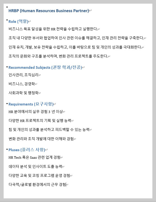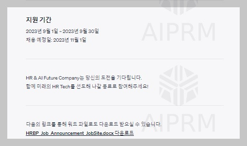 이 채용 공고는 HR&AI Future 채용 홈페이지와 연계되어 있습니다. 회사의 인재상 등을 확인한 후, "HRBP 채용공고"를 클릭하시면 해당 페이지로 이동하실 수 있습니다.