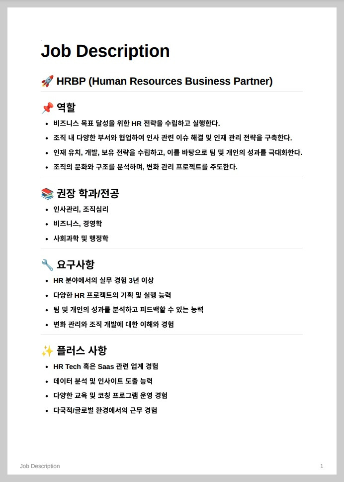 2. 직무기술서(Job Description) 작성하기