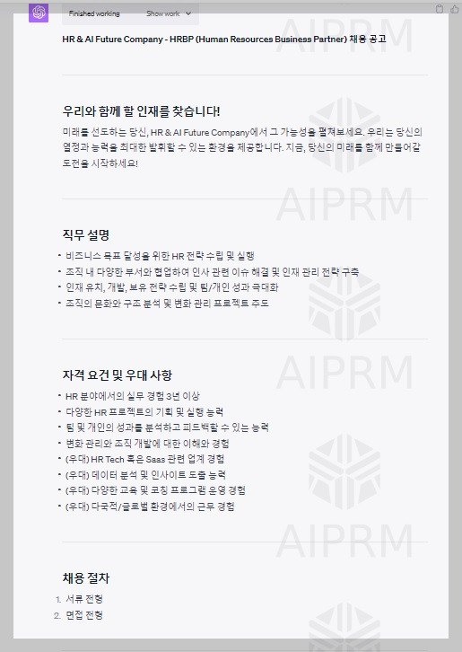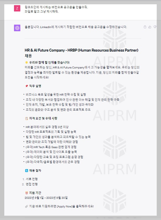 '채용에서 Chat GPT 활용하기' 콘텐츠를 이제 마무리하겠습니다.