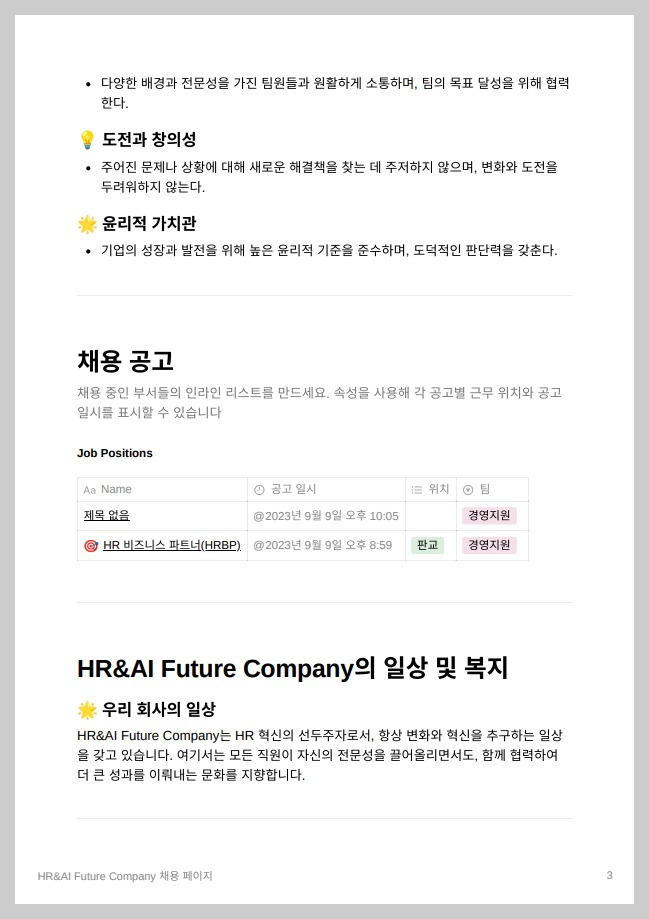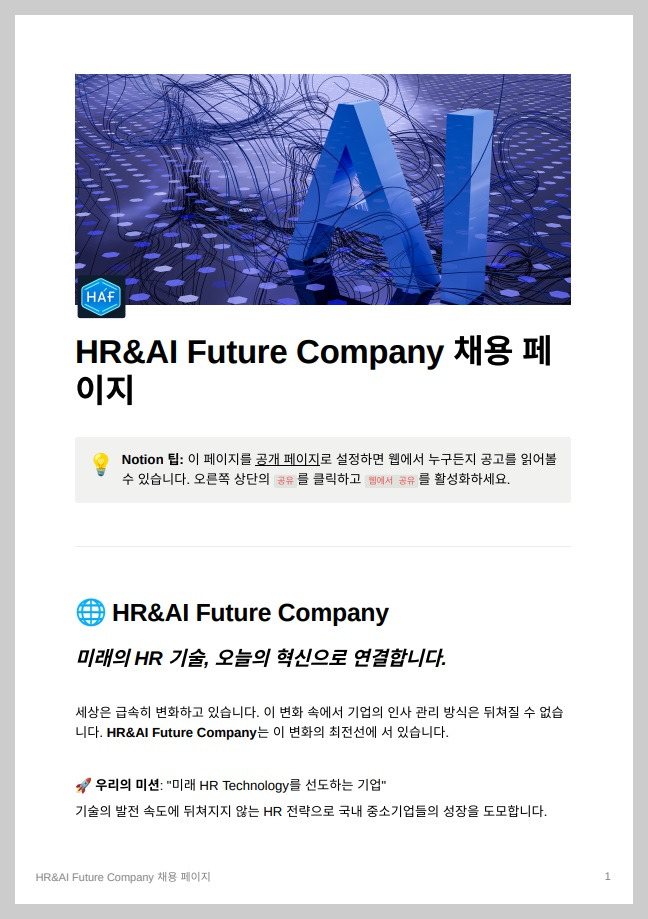 (그림) Notioan AI로 만든 HR&AI Future Company 채용 페이지