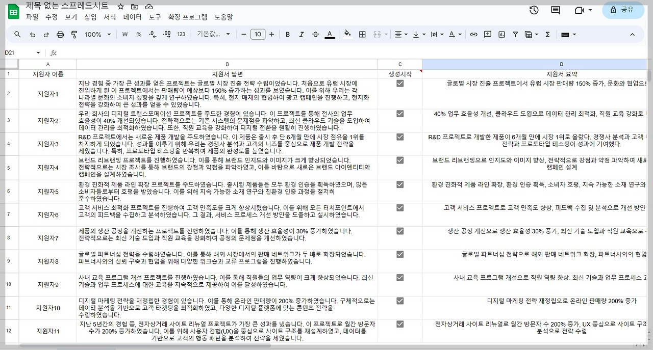2) 지원자의 지원서 답변 요약
