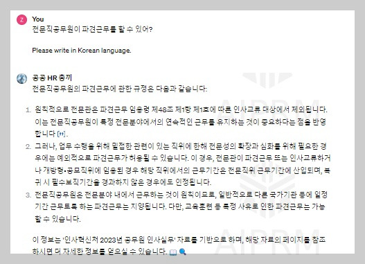 2_1. 국가공무원 HR 정보 제공 챗봇 '공공 HR 총끼'