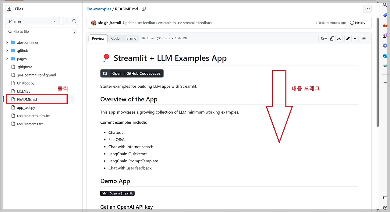 sfc-gh-jcarroll Github, https://github.com/streamlit/llm-examples/tree/main