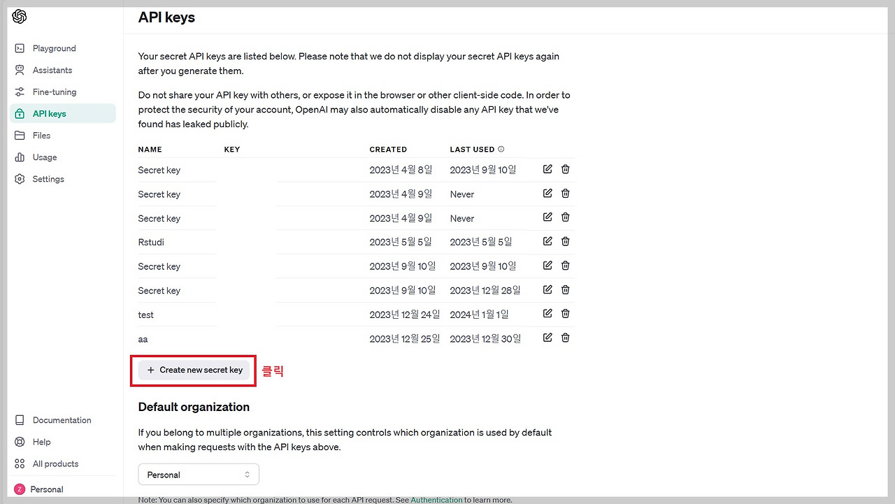 Assistants API를 사용하여 AI 챗봇을 만들기 위해서는 우선 OpenAI API Key 발급이 필요합니다. OpenAI 계정이 없으신 경우에는 OpenAI 계정을 만든 후에 OpenAI API Key 발급이 가능합니다.
