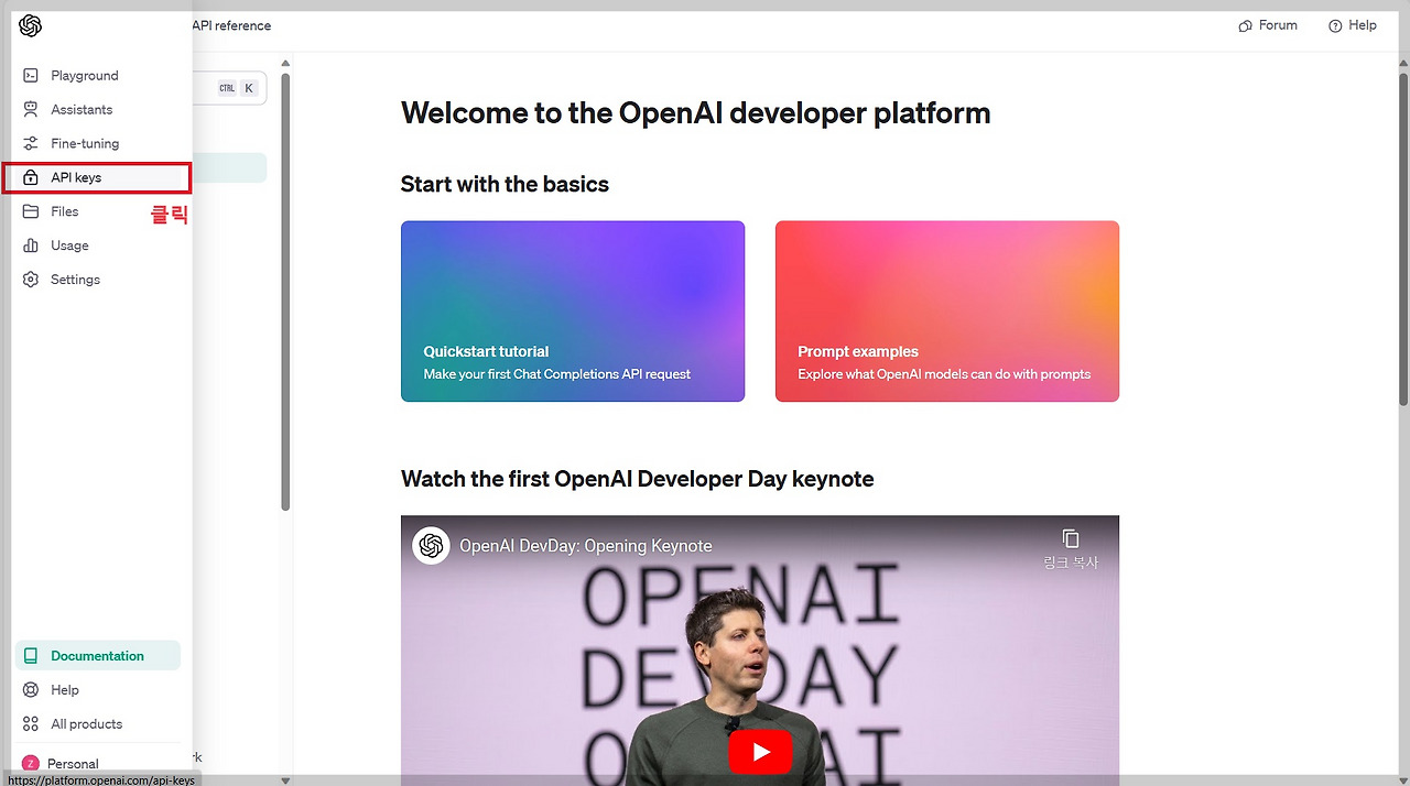 오픈AI 개발자 홈페이지. https://platform.openai.com