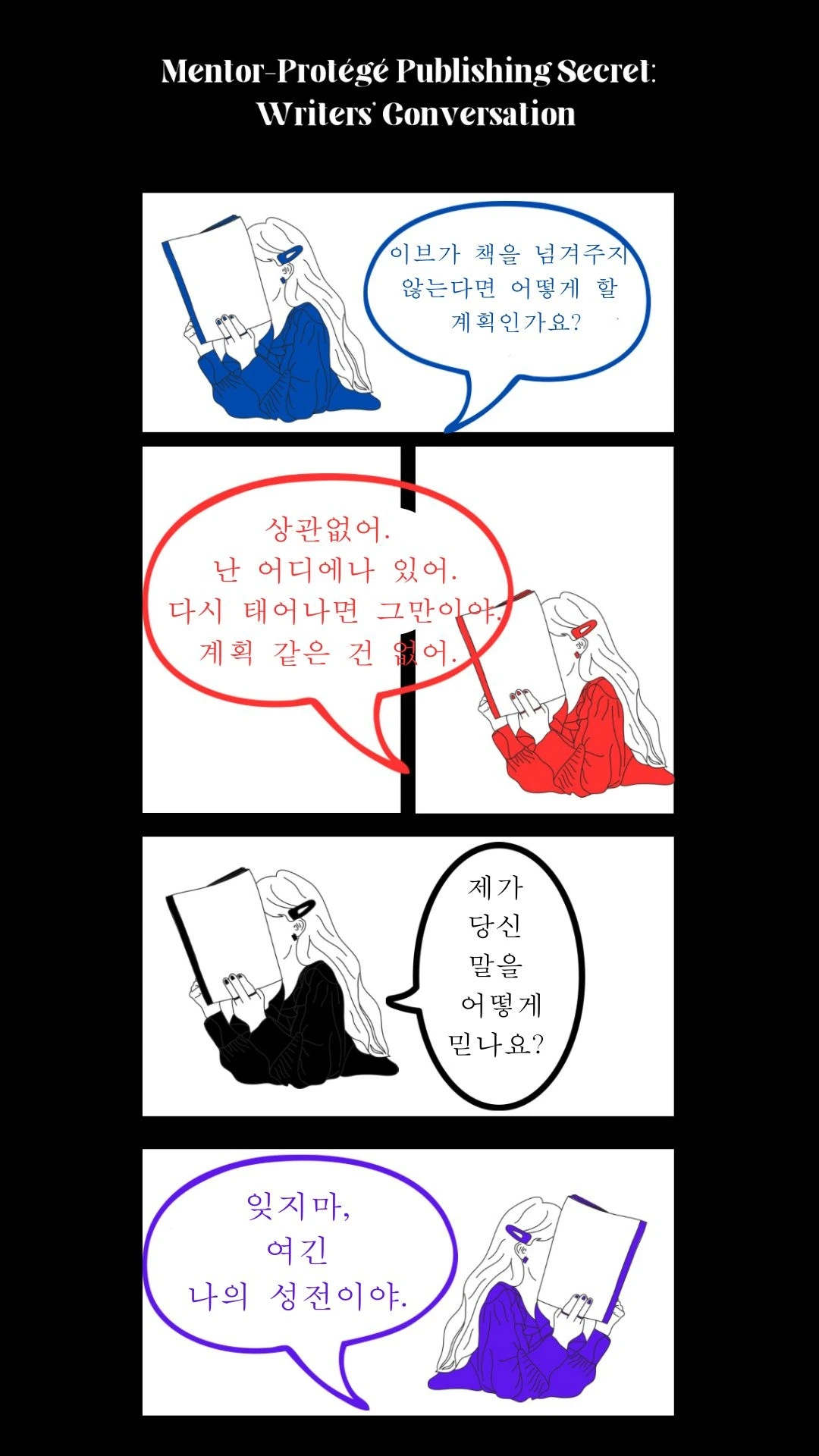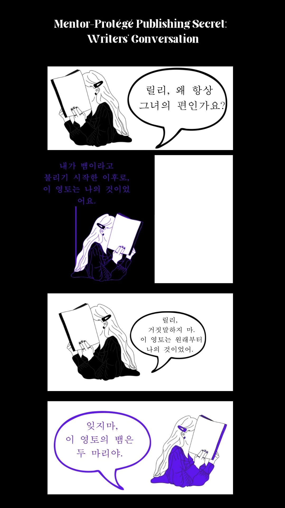 릴리의 정원에 등장하는 인물들이 만나서 대화를 나누고 대학을 설립하게 되는 과정을 담은 시리즈 '멘토프로테제 출판의 비밀:작가들의 대화'는 릴리의 정원의 프리퀄로 읽어도, 시퀄로 읽어도 이야기는 매끄럽게 진행됩니다. 만화 형식으로 제작하기로 결정했고, 후에는 글로도 풀어쓰고 싶습니다.