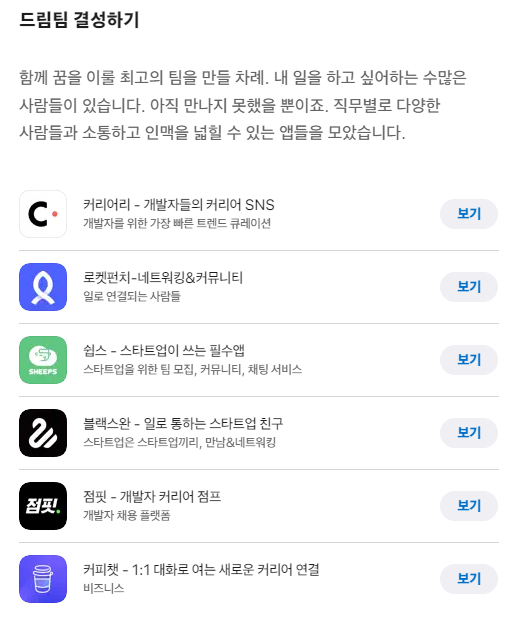 당장 수익 창출이 되지 않더라도 직장인들이 사이드 프로젝트를 시도할 수 있도록 판을 깔아주는 커리어 SNS도 인기다. 대표적으로 퍼블리가 운영하는 커리어리는 IT업계에 재직 중인 2030 직장인에게 필수 앱으로 통한다. 현직자들이 공유하는 인사이트를 접할 수 있을 뿐만 아니라 그들과 직접 네트워킹할 수 있기 때문이다. 커리어리는 2022년 4월 ‘사이드 프로젝트 라운지’ 서비스를 베타 출시했는데, 재직 중인 회사, 직무 등이 투명하게 공개된 커리어 프로필을 바탕으로 동료를 구할 수 있다는 게 장점이다.