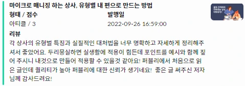 첫 번째는 <마이크로 매니징 하는 상사, 유형별 내 편으로 만드는 방법> 아티클을 읽고 멤버십 사이트에 남겨주신 고객님의 후기입니다. 멤버십 아티클을 처음 읽어본 독자분의 후기여서 더욱 뜻깊게 느껴집니다:)