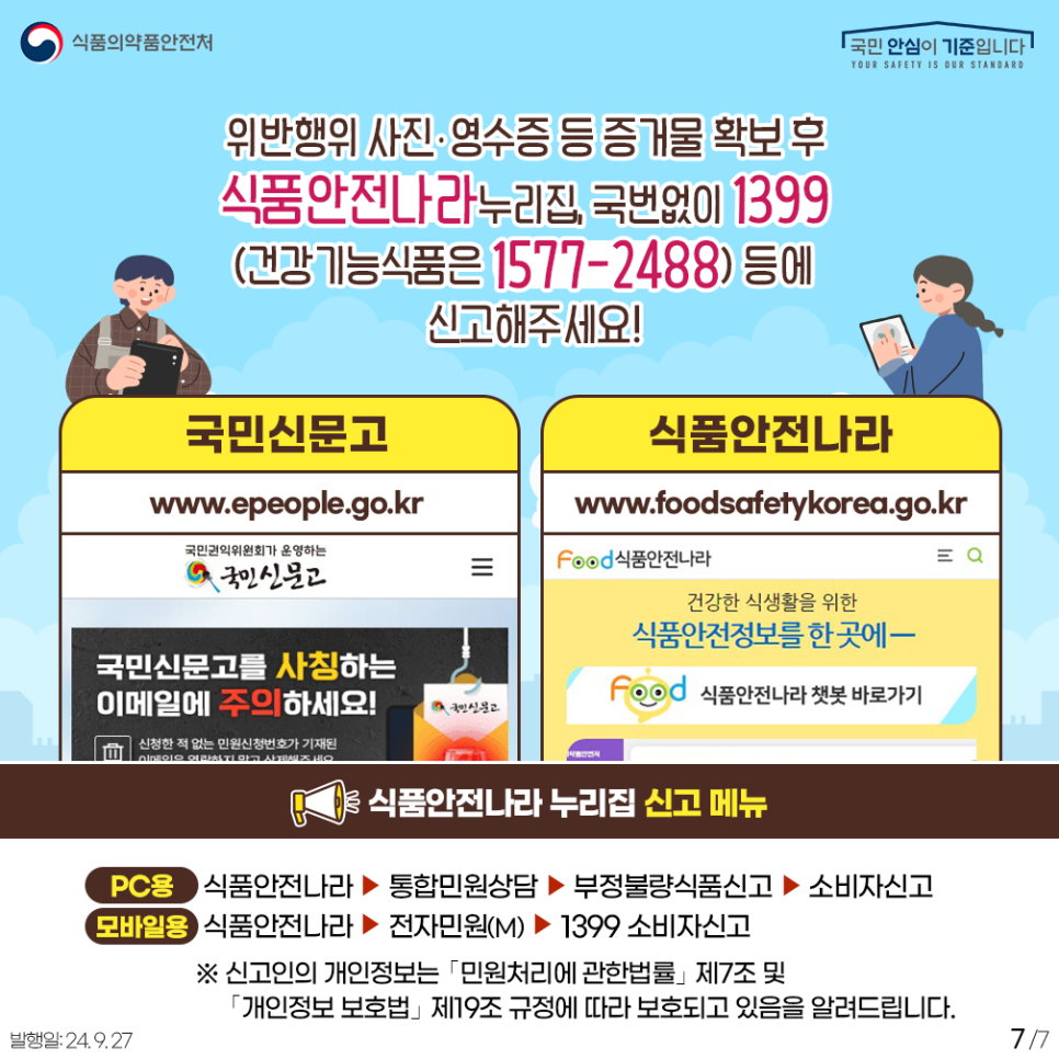“선생님, 지금 식약처 업무 시간은 종료되었고 저는 당직자입니다. 불량식품을 신고하시려면......”