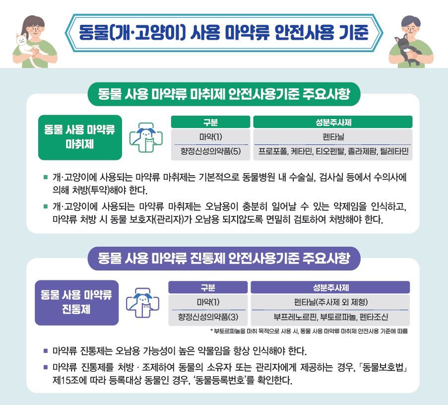 반려동물을 양육하는 가구 수가 증가하고 있고 환경 변화에 따라 반려동물의 수명도 전보다 길어졌다. 동물병원에서도 중성화 수술 외에도 다양한 분야의 전문적인 수술이 진행되고 있다. 수술대에 오르면 필연적으로 마약류 의약품에 해당하는 마취제를 투약받게 된다. 반려동물이 가족의 일원인 만큼 ‘내 동물 투약 이력 조회’ 기능도 장기적으로는 필요하지 않을까. 동물 소유자/보호자의 주민등록번호나 동물등록번호로 인증 절차를 거치면 가능하지 않을까 고심해 본다. 현재는 동물병원에 직접 문의하여 투약 이력을 확인해야 한다.