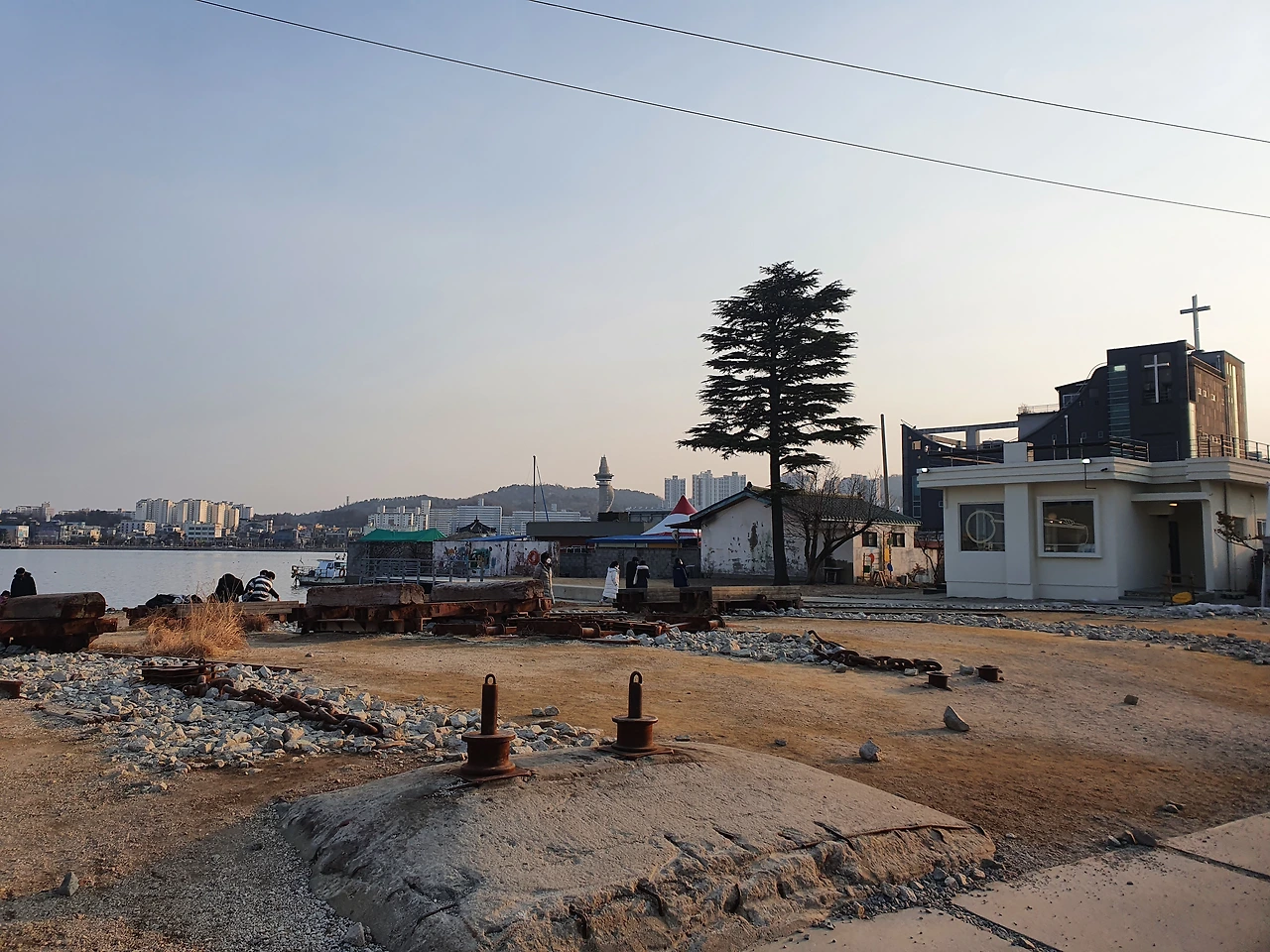 늦은 점심 식사를 대충 때운 우리는 소화를 시킬 겸 걷다 칠성 조선소라는 장소에 도착했다. 언뜻 보면 낡은 조선소로 보이지만, 속초를 방문하는 사람들에게는 이미 유명한 카페였다. 수 십 년 전부터 동해 바다로 나가는 작은 나무배를 만들거나 수리하던 조선소였던 이곳은, 조선소의 흔적을 그대로 두고 대신 그 옆에 카페를 만들어 두었다. 카페만 보면 또 동해안에서 흔히 보이는 평범한 오션뷰 카페처럼 보이지만, 밖으로 나오면 예전에 배를 만들던 흔적이나 배를 수리하던 장소가 녹슨 채 남아 오묘한 감정을 낳았다. 과거와 현재가 공존하는 색다른 장소로 바뀐 셈이었다. 평소 만나볼 수 없는 조선소라는 낯선 장소에서 만나는 향기로운 커피, 그리고 멋진 풍경 덕분에 속초에서 꽤나 유명해진 지 오래였다.