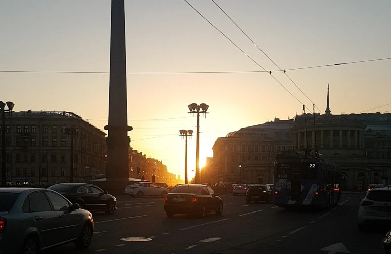 금방 도착하겠다 생각해서 넵스키 도로의 해 지는 아름다운 풍경을 구경하며 천천히 이동하였습니다.
