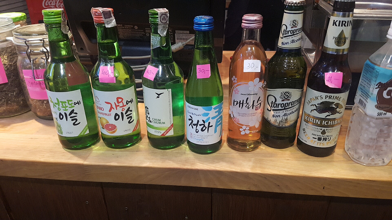 구시가지에서 40분 가량 걸어 갔는데 따듯한 국밥 한그릇 생각하니 김첨지마냥 힘든 줄 모르겠습니다. 도착해서 보니 한국인이 하는 한식당이 아니라 폴란드인이 운영하는 한식당이지만 실내로 들어오면 한국 음식 냄새로 마치 한국에 돌아온 기분입니다. 폴란드인들이 가득한 것만 빼면 한국 식당입니다. 소주, 과일소주 등 한국 술이 나열되어 있고 배 음료수와 식혜 같은 한국 음료들도 즐비합니다. 들어가자마자 고딕체로 보이는 닭도리탕과 보쌈 이라는 글씨는 정말 친숙합니다.