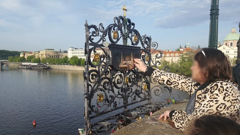 카를교에서 소원을 비는 방법은 다음과 같습니다. 우선 위 사진처럼 왼손으로는 다리 위의 십자가에 손을 올리고 오른손으로는 동판을 잡고 블타바 강을 바라보며 단 한 가지 소원을 생각합니다. 그리고 아무 말도 하지 않고 얀 네포무츠키 신부의 오른쪽 아래의 사람을 만지며 소원을 다시 한번 빌어야 합니다. 동판의 반질거리는 곳 아무 곳이나 만지면 안 되는 나름 규칙을 지킨 사람의 소원을 들어주는 신비한 다리입니다.